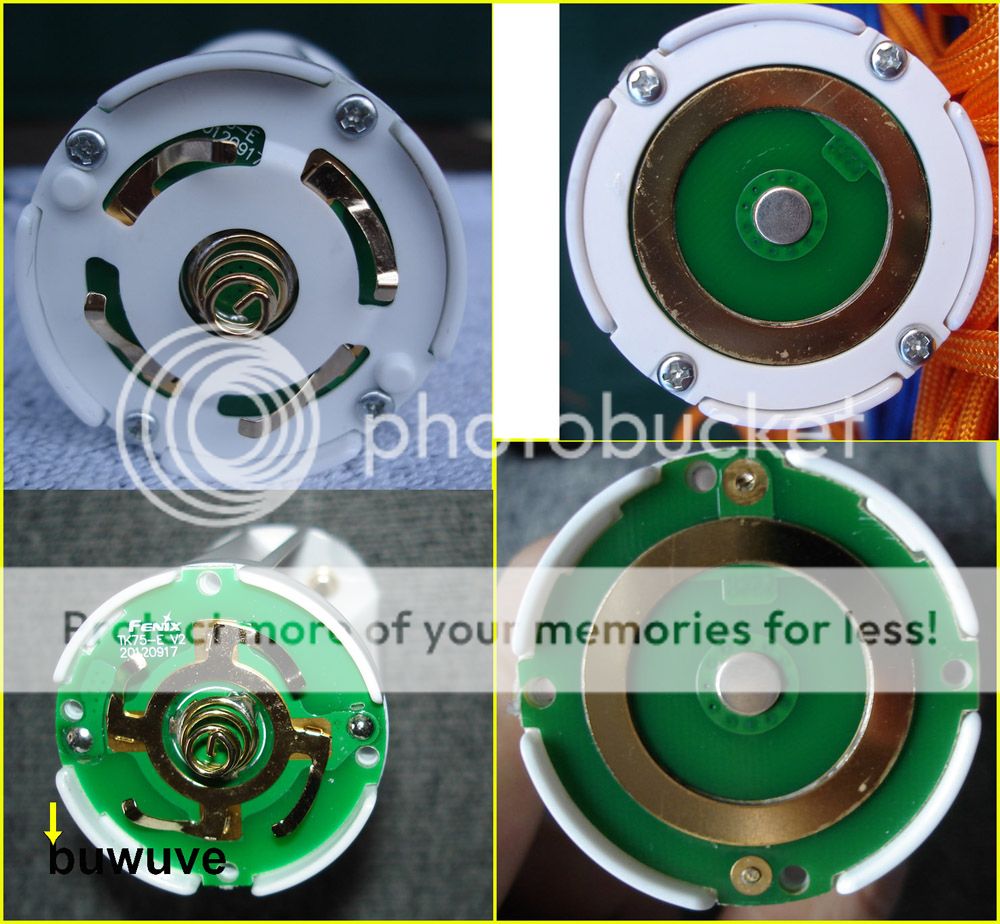 Bei meinem Akkuträger ist mir aufgefallen, dass die Kontakte an den Pluspolen der 18650 Schächte in ihrer Halterung locker sind. Wenn man nur zwei einlegt und zwei Schächte frei bleiben klappern diese Kontakte wenn man den Akkuträger schüttelt. Wenn alle vier Schächte belegt sind klappert natürlich nichts, da an jedem Kontakt ein Akku anliegt. Mein Akkuträger stammt vom 12. Sept. 2012 (wenn die Ziffern auf dem Akkuträger das Produktionsdatum darstellen) und wurde für die Fenix TK75 produziert. In den anderen Reviews wurde schon geäußert, dass wohl ältere Akkuträger für die Betatest TK76 benutzt wurden. Aus dem Grund bin ich auch nicht über kleine Kratzer wie z.B. am Ringkontakt überrascht.