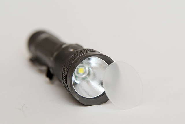 In der Packung findet ihr die Taschenlampe, einen hochwertigen Holster, ein Tütchen mit zwei schwarzen O-Ringen sowie eine Milchglas-Scheibe („frosted“ für mehr Flood, beispielsweise bei Verwendung im Zelt, als Leselampe o.Ä.) und eine Anleitung.