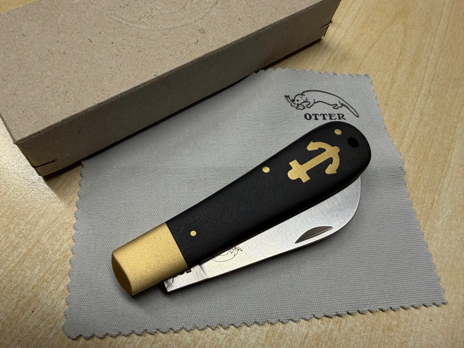 Ich habe hier 2 unbenutze Otter Ankermesser (Knife Lounge Exclusive) für euch. Eins mit blue Richlite -Verkauft- und eins mit schwarzen Micarta -Verkauft- . Beide sind in der rostbeständigen Variante mit 1.4034. Der versicherte Versand ist inklusive oder Übergabe morgen in Schaafheim
