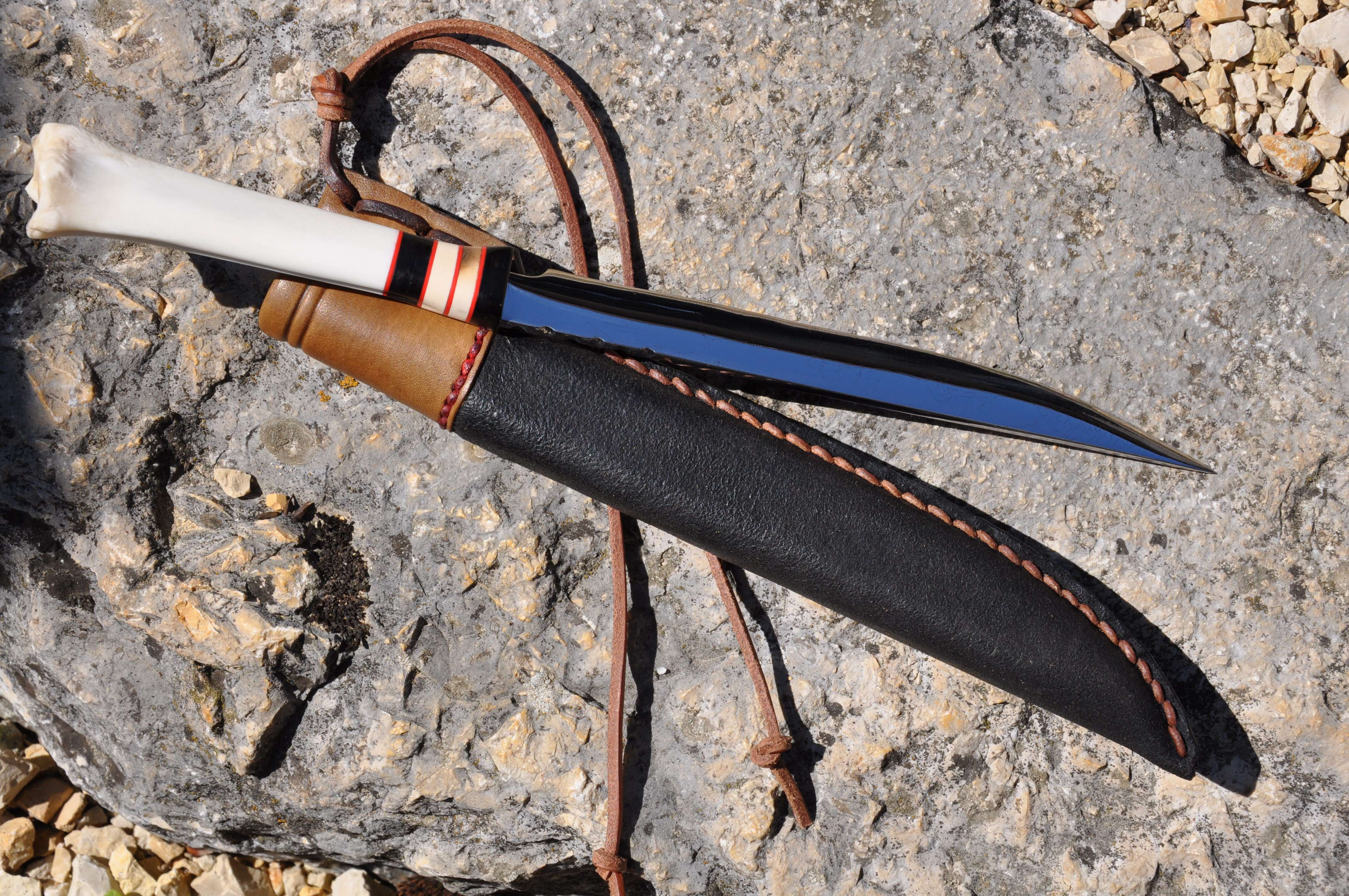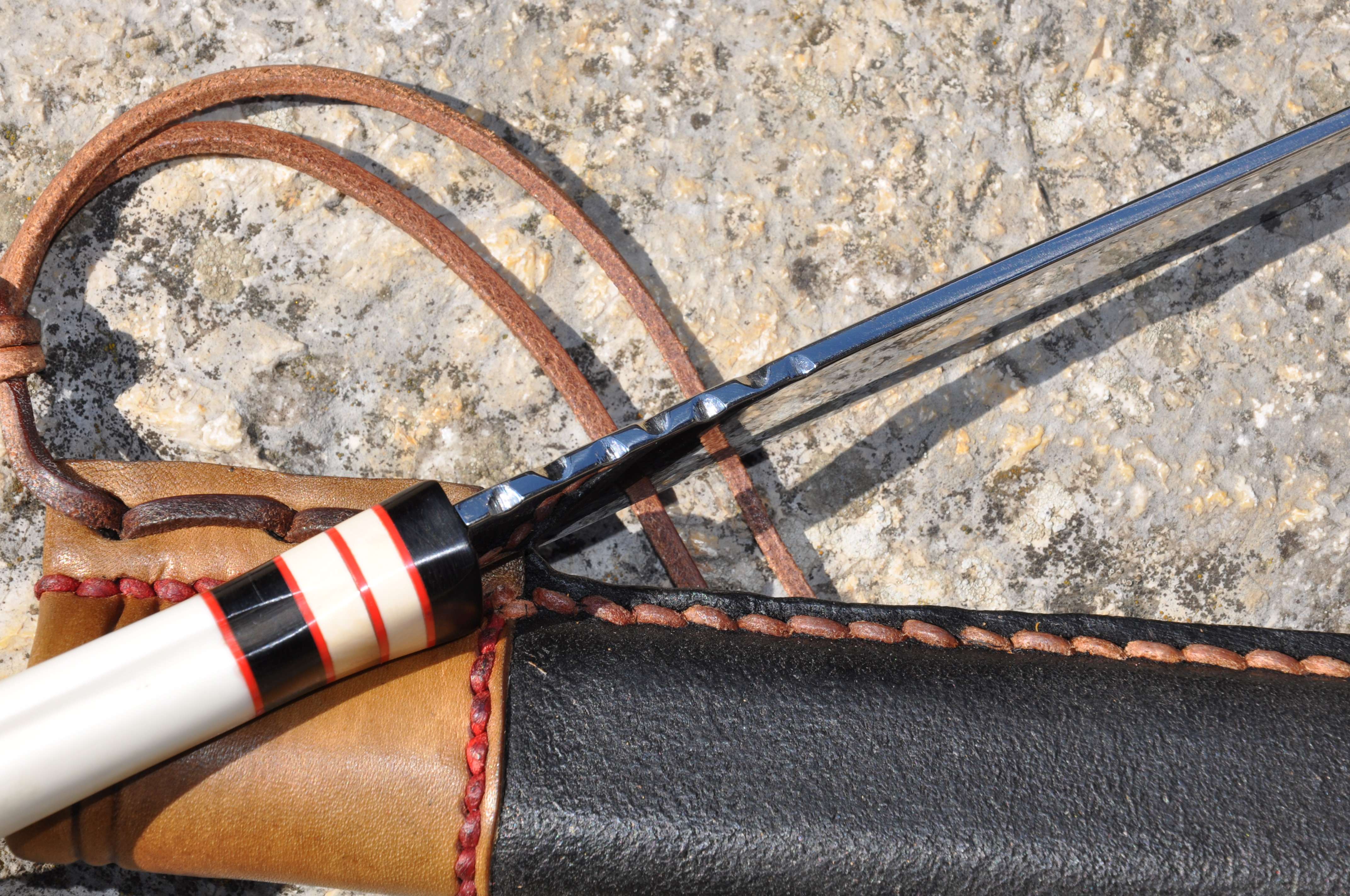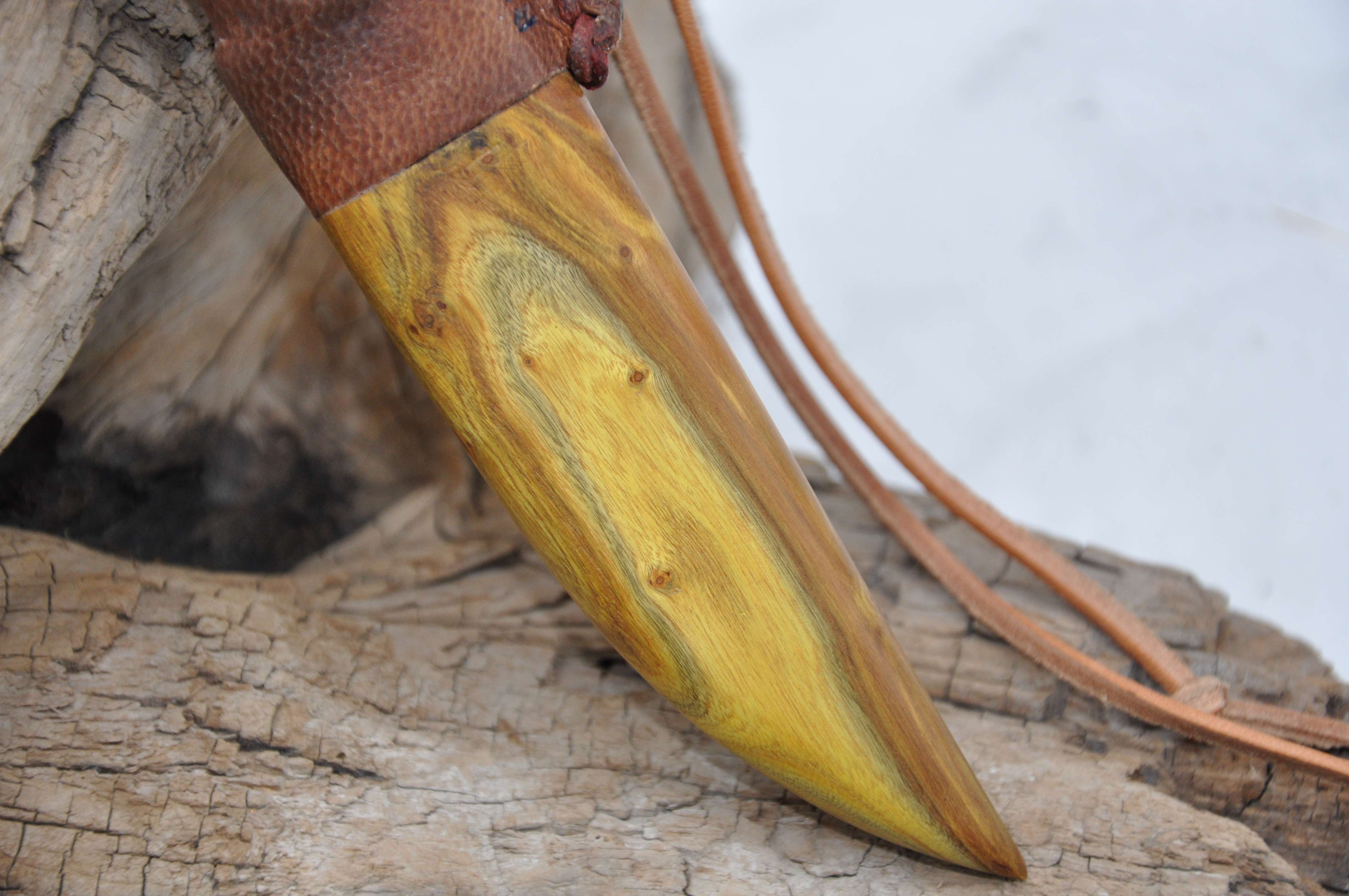 Scheide ebenfalls aus Goldregen und gewachstem Leder.