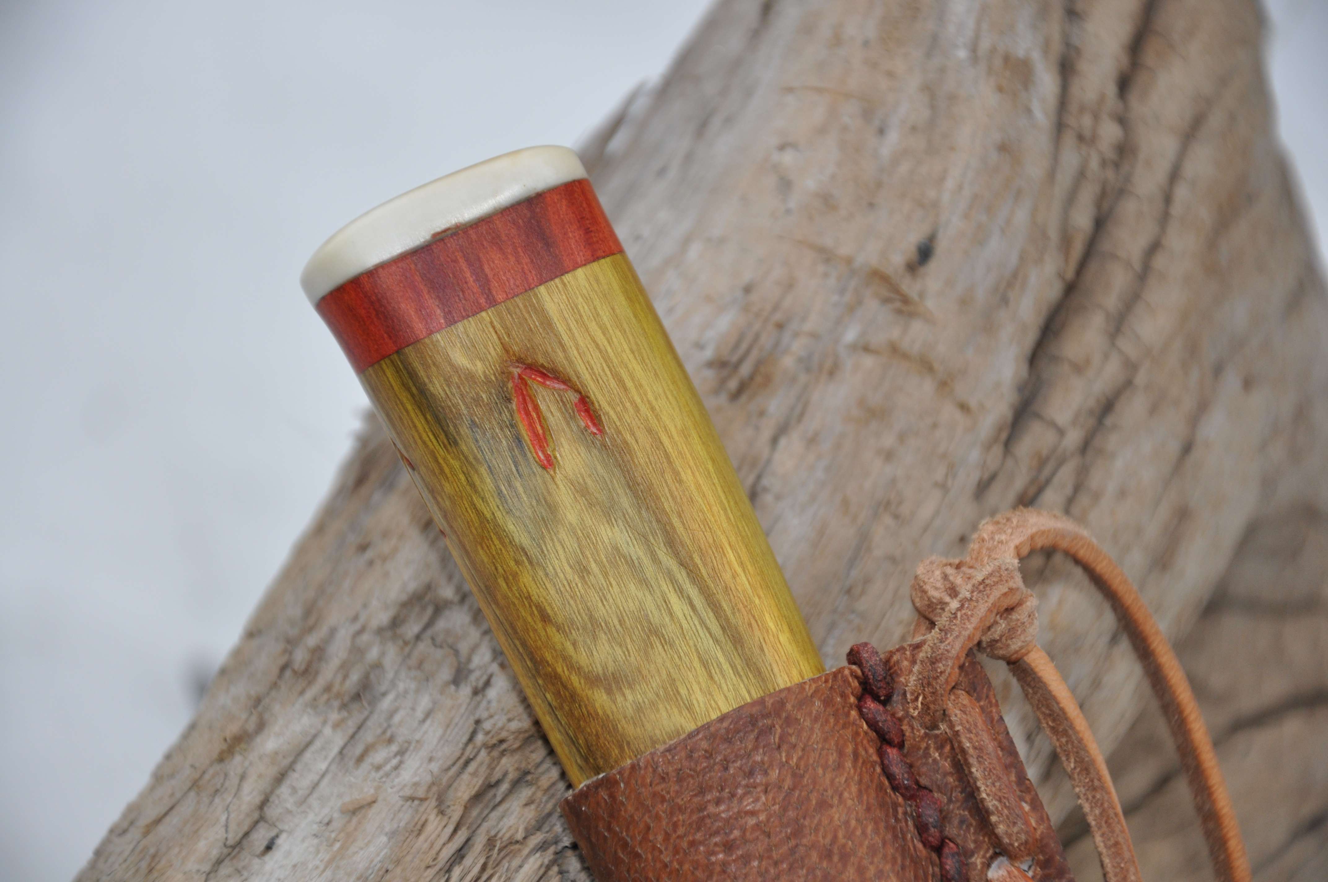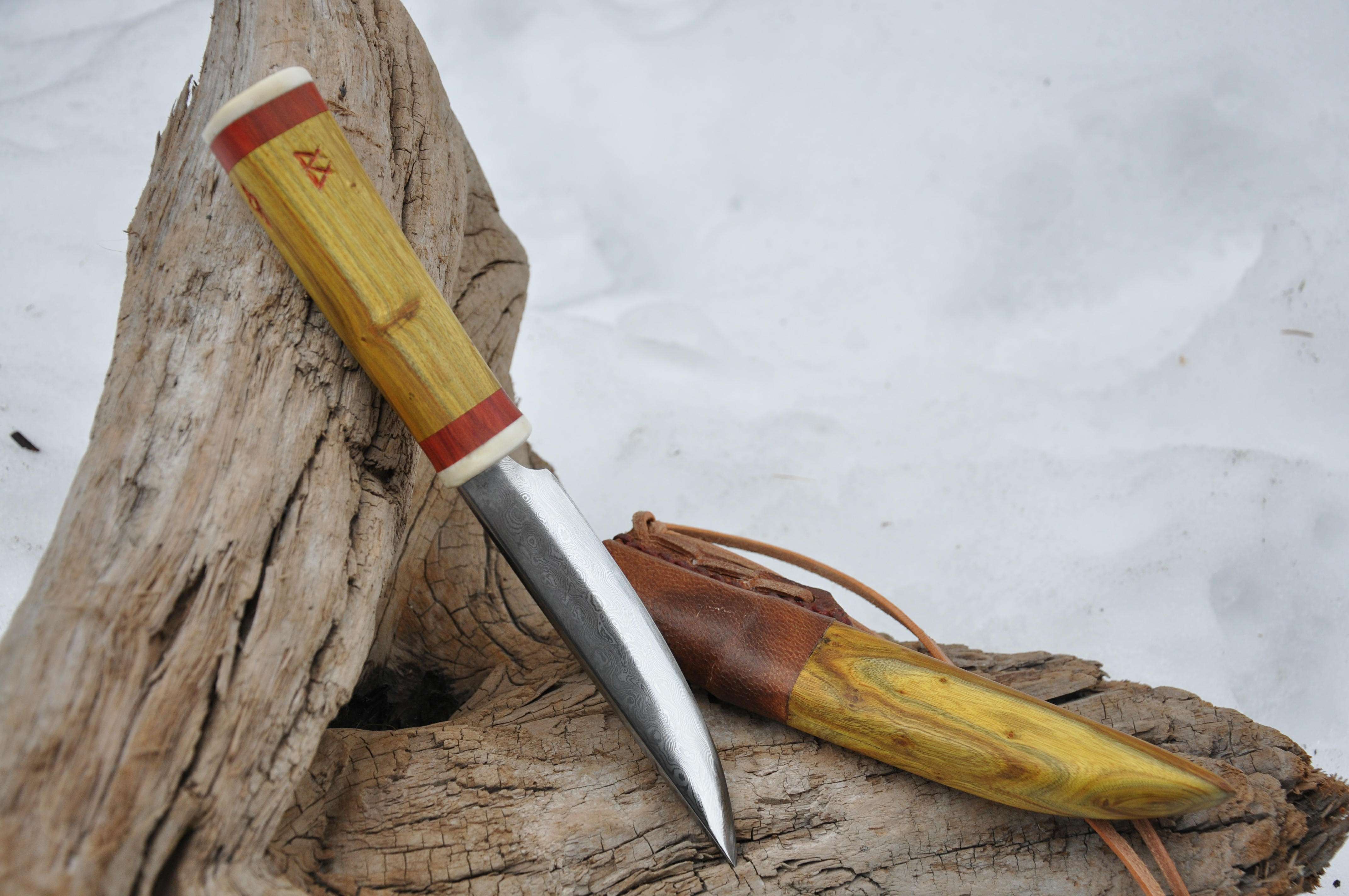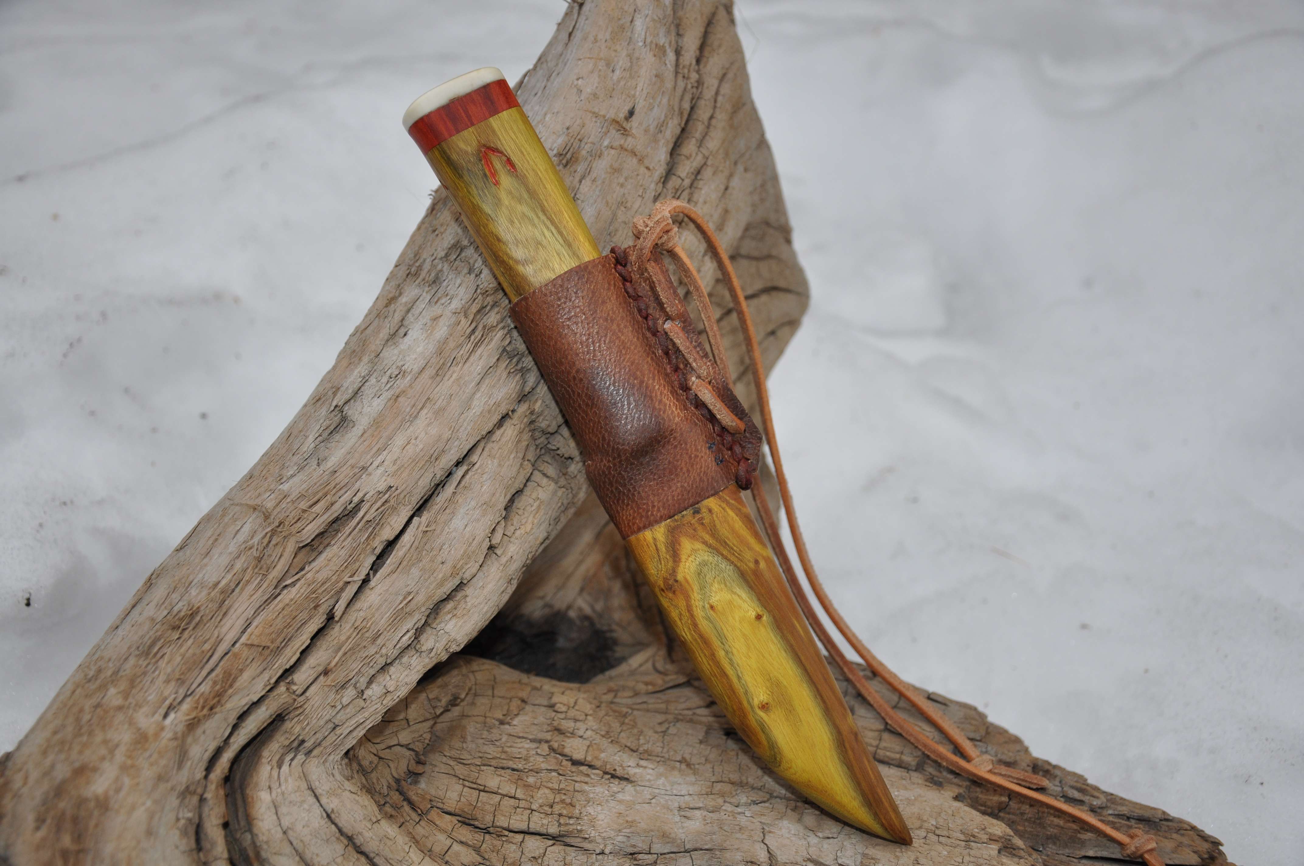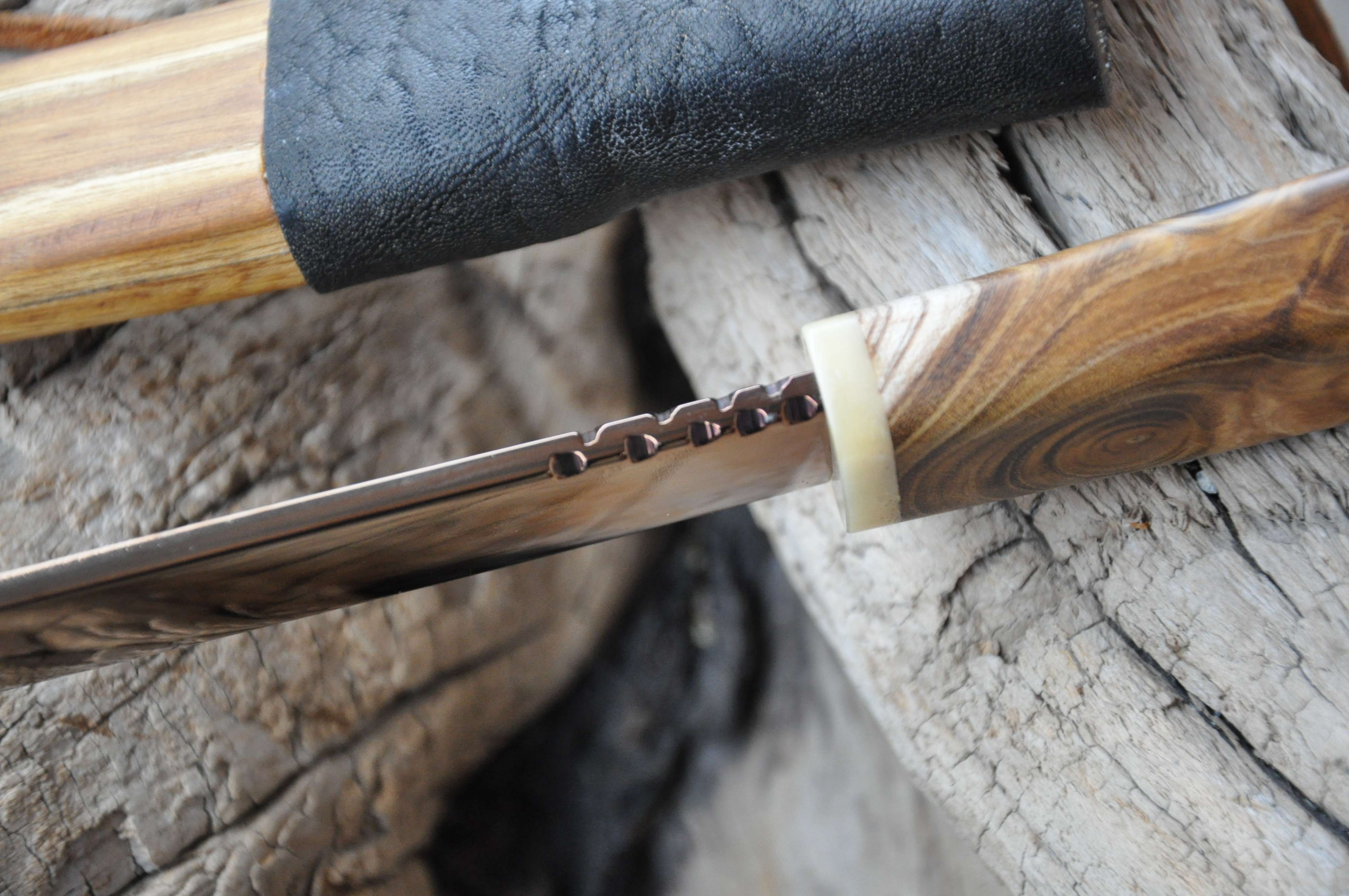 Scheide ebenfalls aus Goldregen und gewachstem Leder.