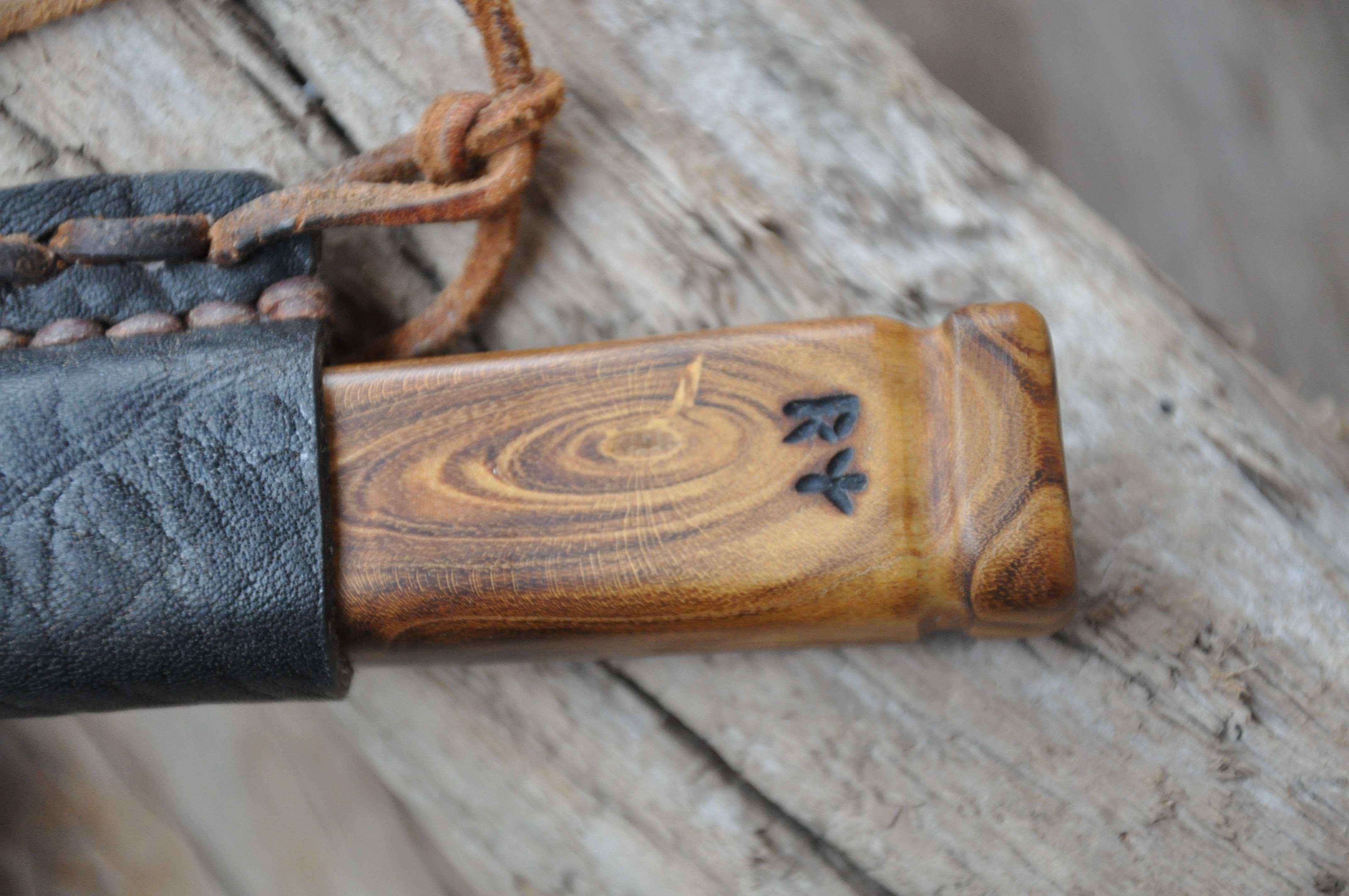 Scheide ebenfalls aus Perrückenstrauch und gewachstem Leder.