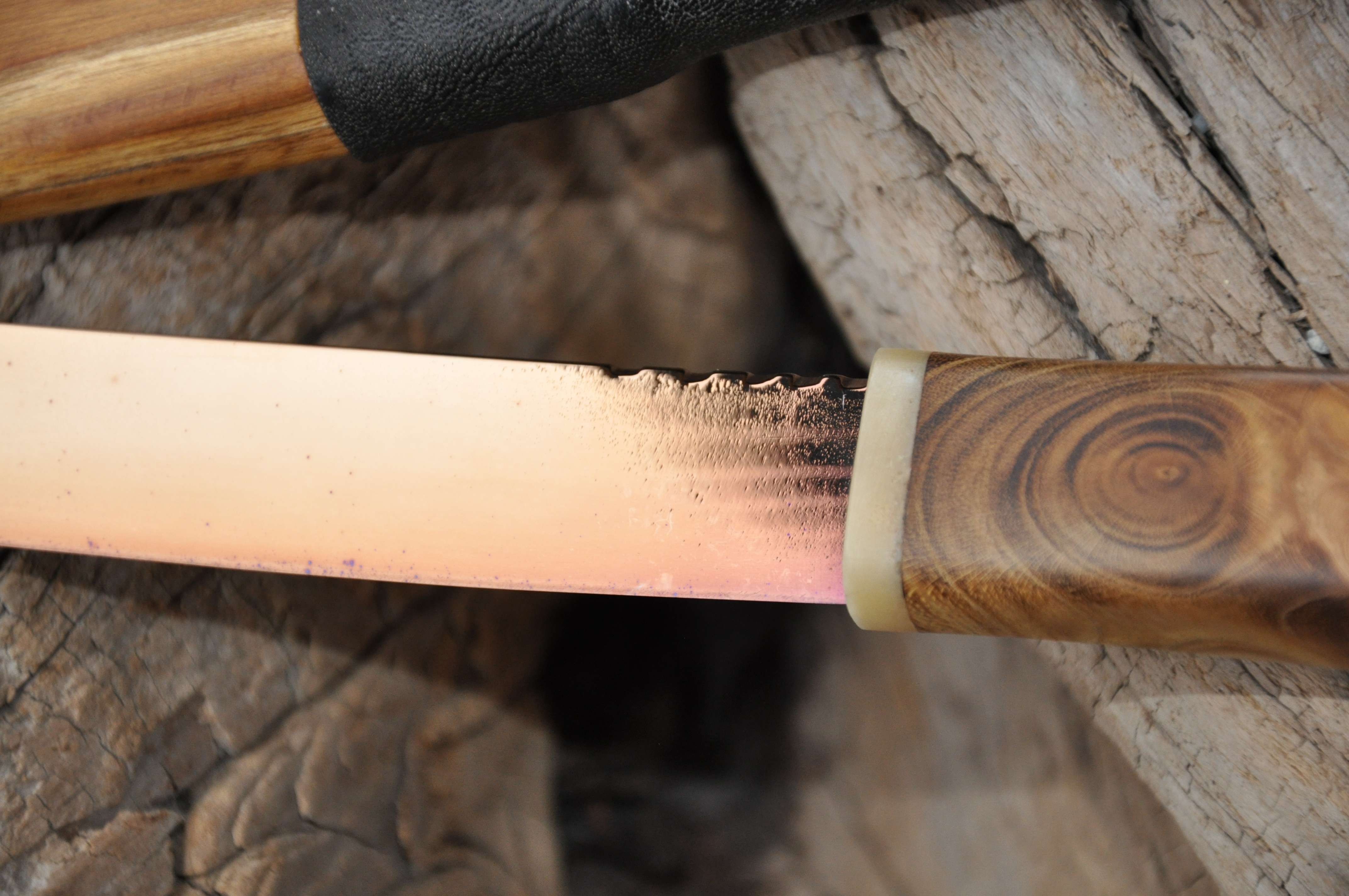 geäzt, Poliert und auf ca. 230° Anlassfarbe gelassen.
