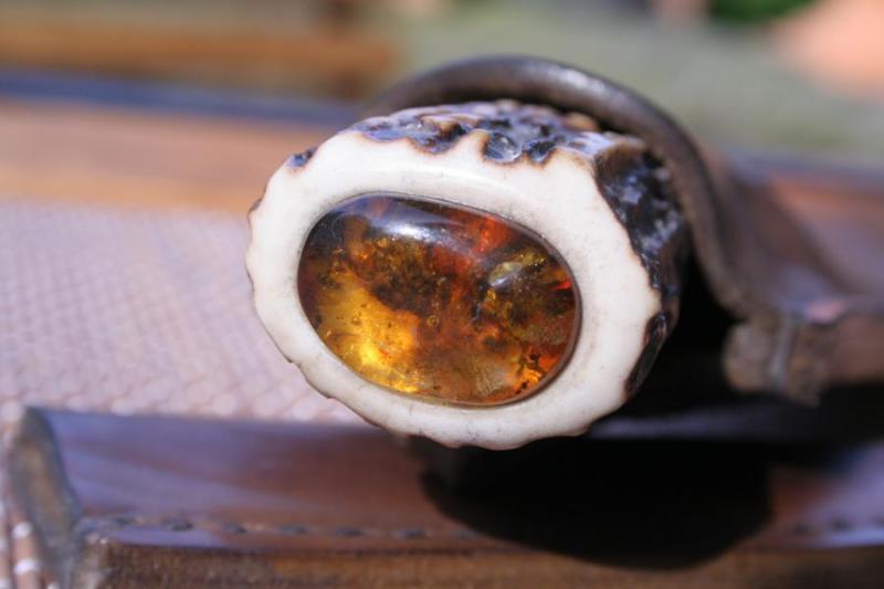 Der Griff ist Sambar mit einer Bernstein Einlage.