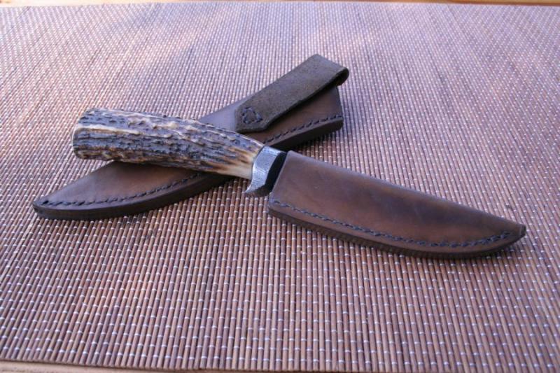 Die Lederscheiden hab ich bewußt ohne Verzierungen gemacht da mir persönlich das besser gefällt und mir auch nichts passendes zum Messer einfiel.