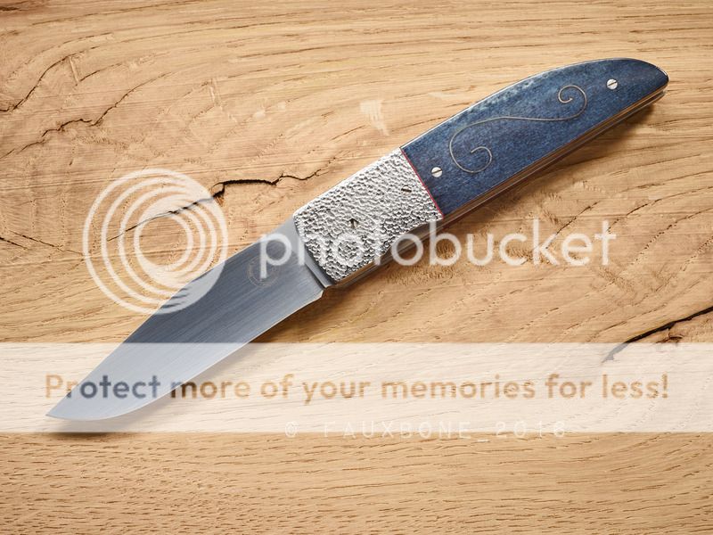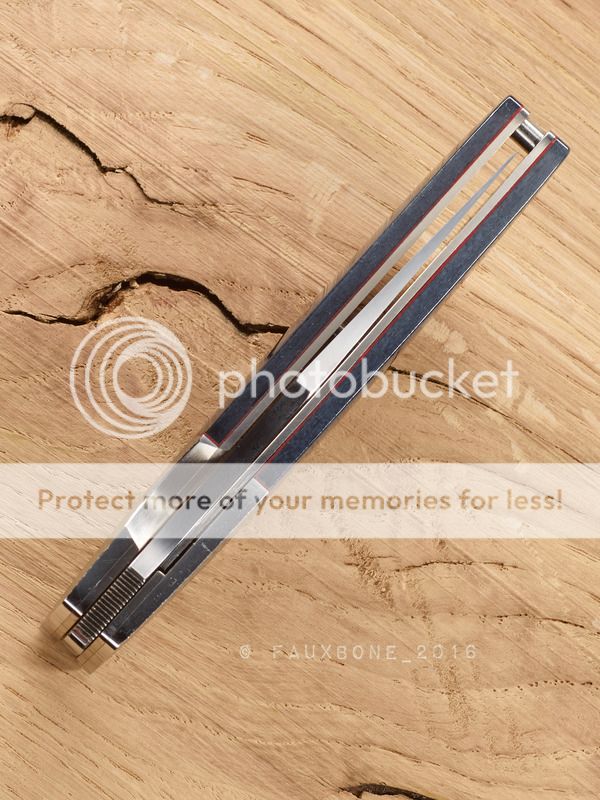 100mm Griff mit Blauem Giraffenknochen und dünnen roten Linern