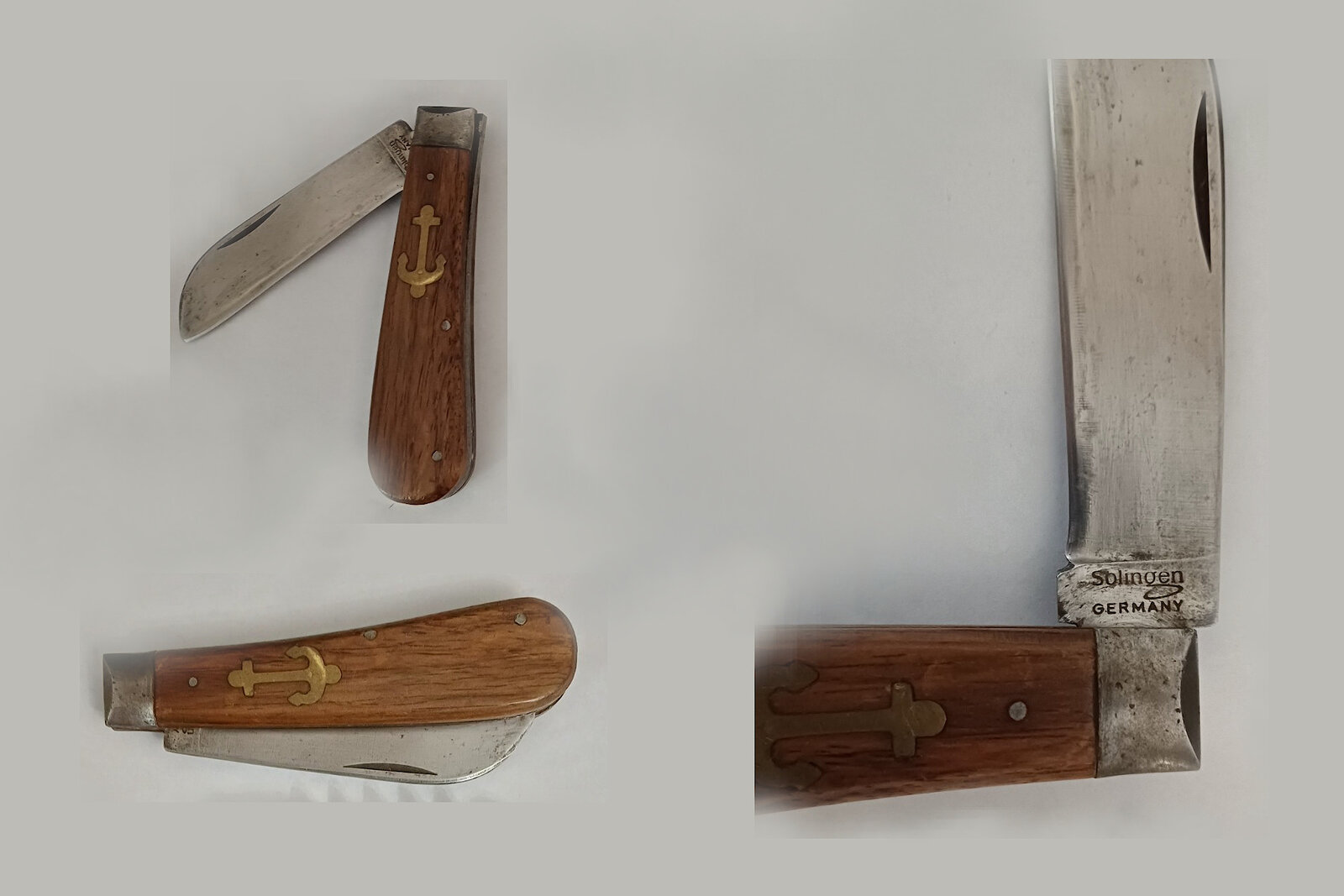 Taschenmesser mit einer prägnanten Einlage in der Griffschale in Form von einem Anker aus Messing werden üblicherweise den Solinger Herstellern OTTER sowie C. Lütters & Cie (LÖWENMESSER) zugeordnet, die diese Messer seit Jahrzehnten handwerklich fertigen.