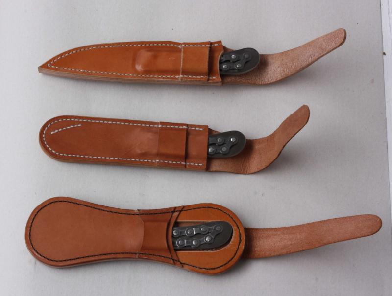 Stahl ist immer SB1. Für jede Klinge gibt es eine andere Lederscheide.