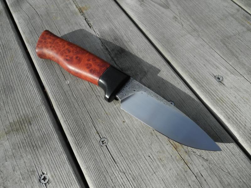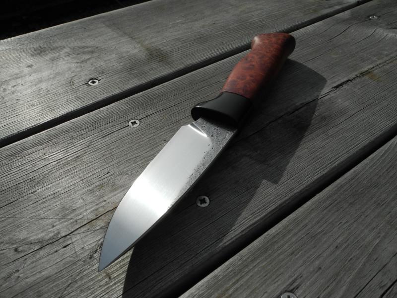 Es ist nicht komplett in Form geschmiedet, Es war ein Flachstahl dem ich mit Hammer, Ambos und Feuer eine Klingenform verliehen habe.