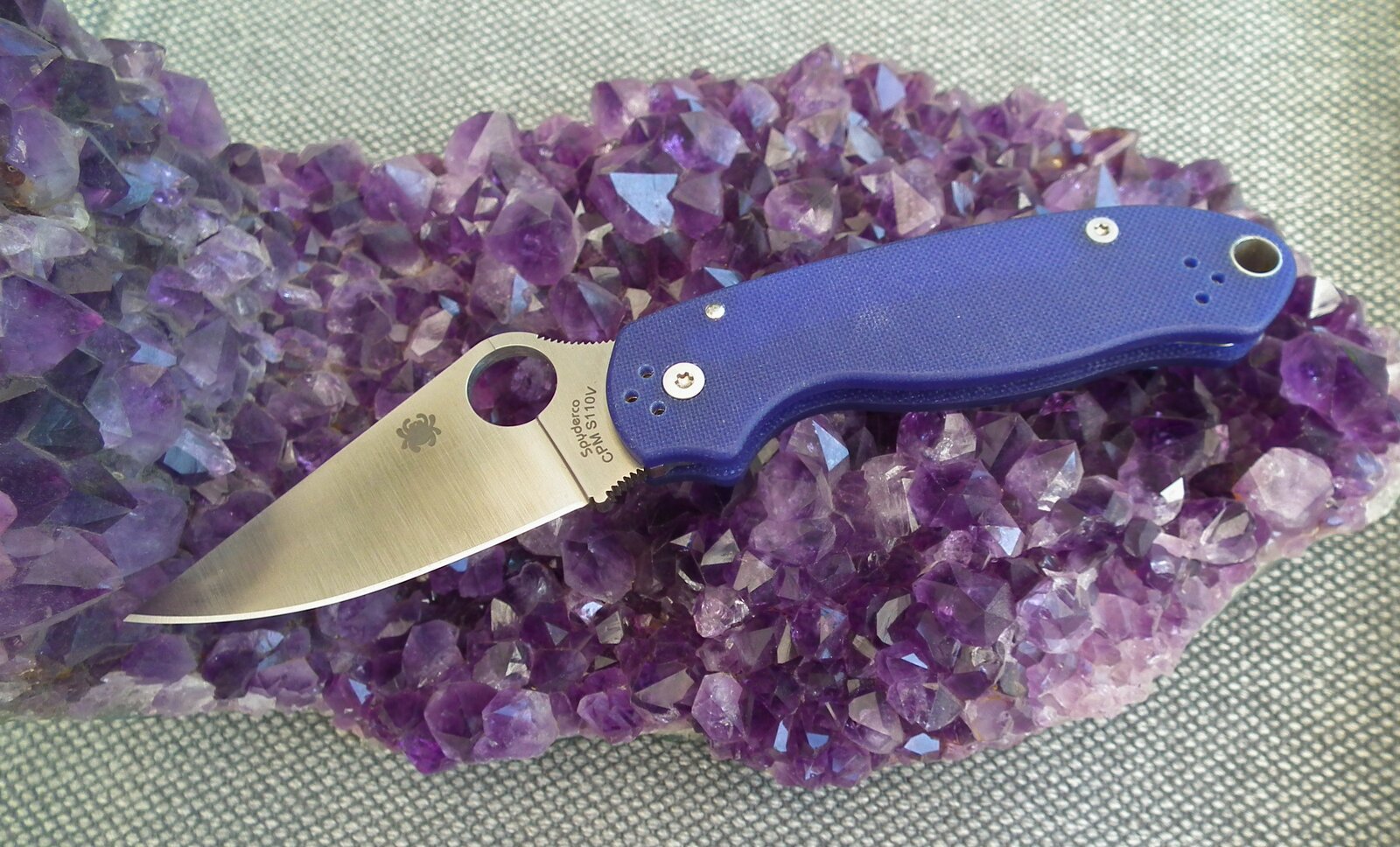 Parrot ist ja eigentlich das englische Wort für Papagei, die ja oft recht farbenfroh sind. Und andere Parrot-Varianten haben auch mehr Farbe, aber beim Messer in der Version mit Griff aus G10 und Carbon-Overlay passt „ein Hauch von Blau“. Der Blauanteil im Griff ist dezent zurückhaltend.