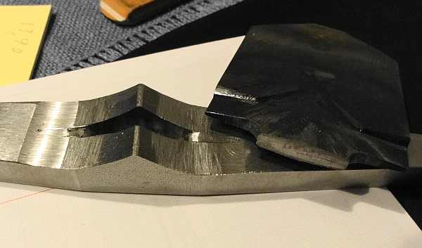 Die Klinge wurde dann an der Spitze eingekürzt und komplett neu in Form geschliffen.
