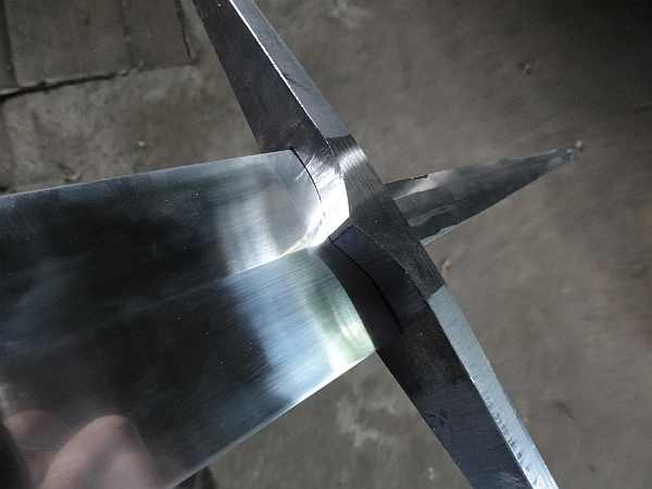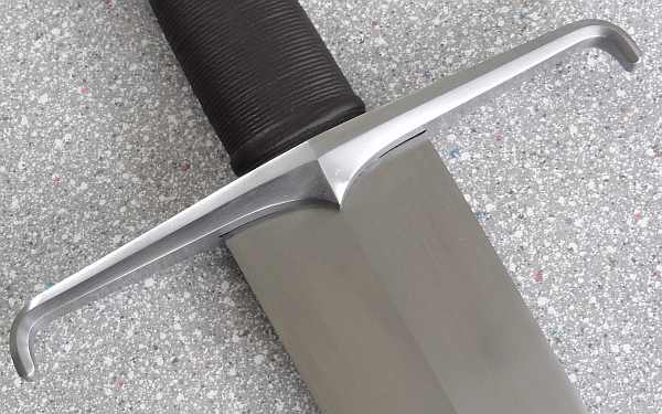 Das Kreuz oder Parierstange ist im Design nach historischen Vorbild gemacht worden. Das ganze dann aber aus einfachen C45 nicht gehärtet .