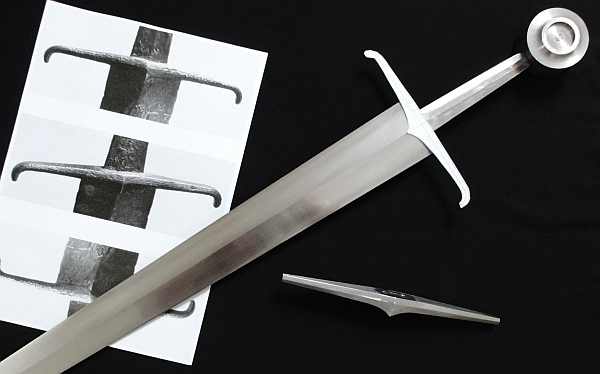 Diesmal waren Schwerter des 15. Jh. das Vorbild bzw. die Inspiration für dieses relativ kurze aber recht kräftig gehalte Schwert.