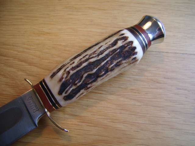 Genau so ein Messer hatte der Junge, der ich Anfang der siebziger Jahre war, am Gürtel, als er in den Wäldern seiner alten Heimat Westfalen mit selbstgebauten Bogen und Pfeilen Robin Hood spielte.![]()