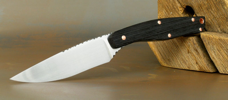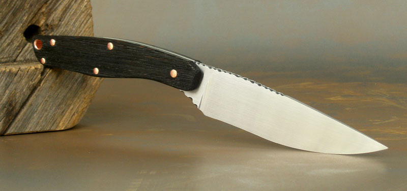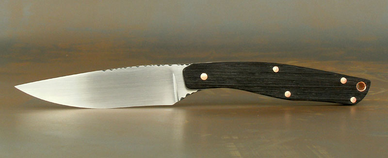 Griffschalen aus Wengé gebürstet, Kupferpins und Fangriemenöse.