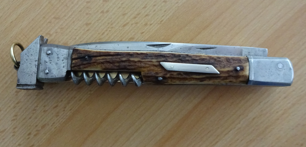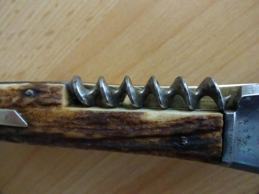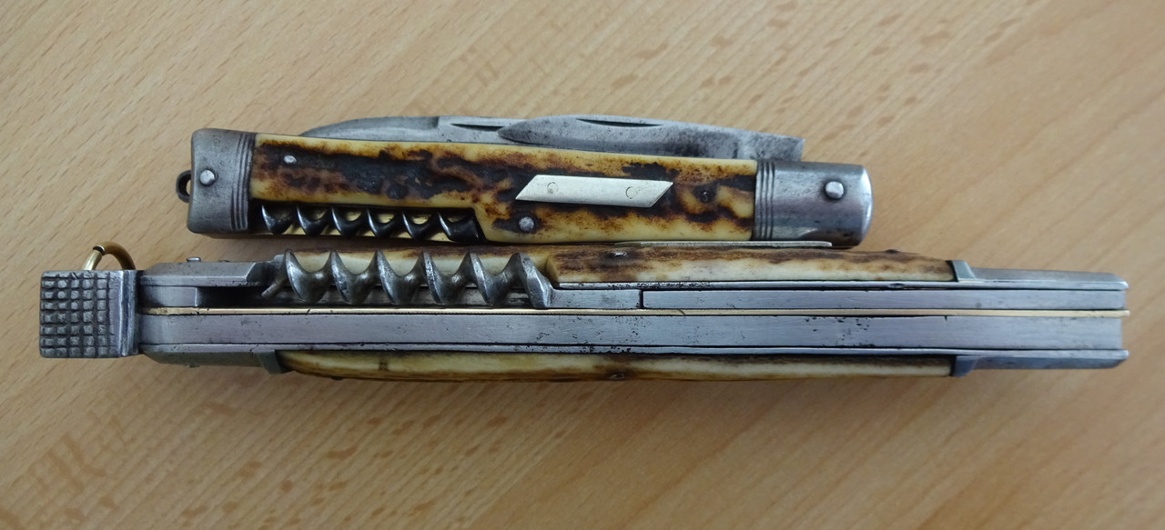 Here is a smaller model by Henckels which was most likely made for opening and closing wood cigar boxes. Also enclosed is a Henckels catalog illustration from 1893 showing the same style of machined corkscrew. Later models of this Henckels knife had wire-wound corkscrews.