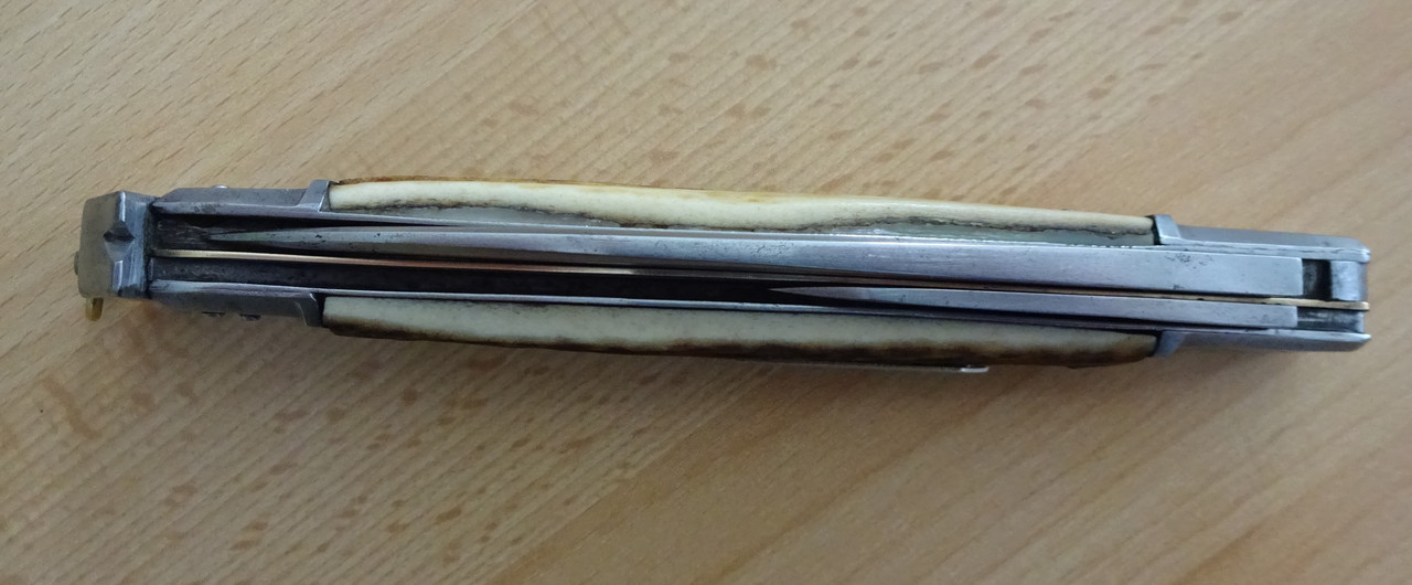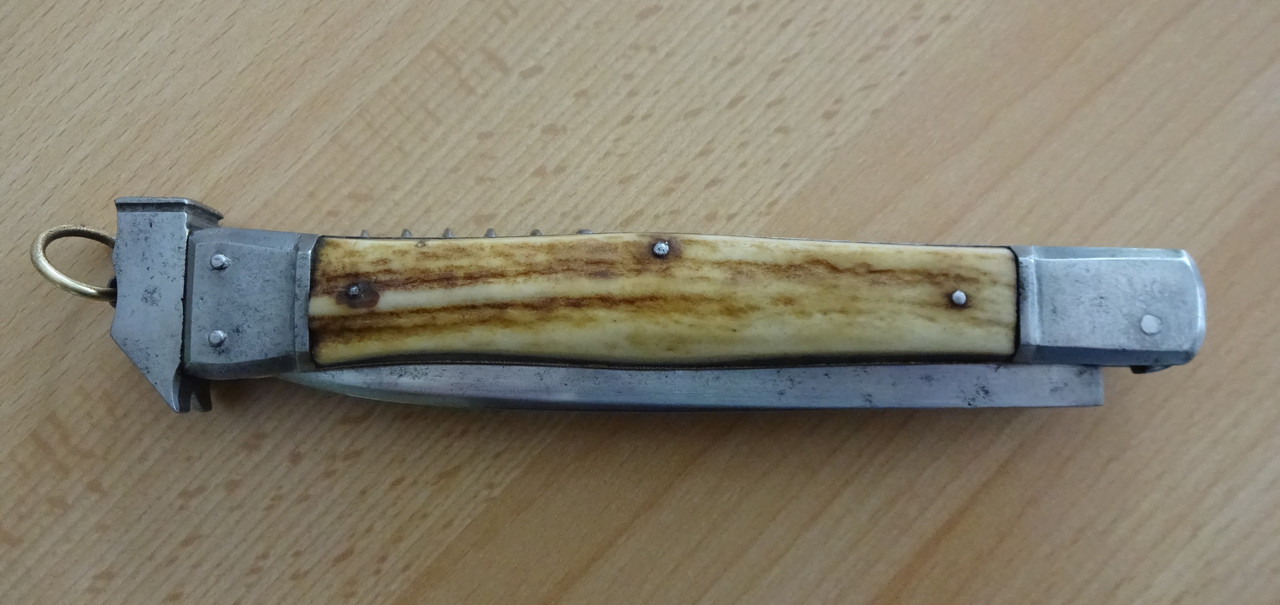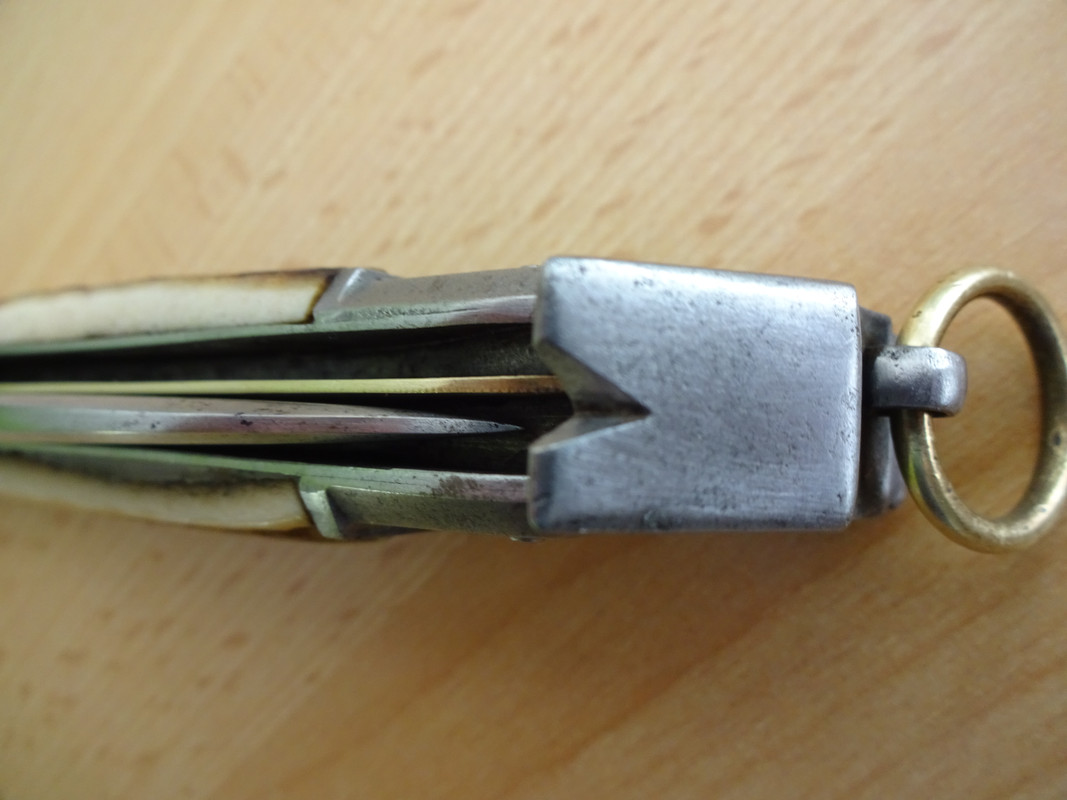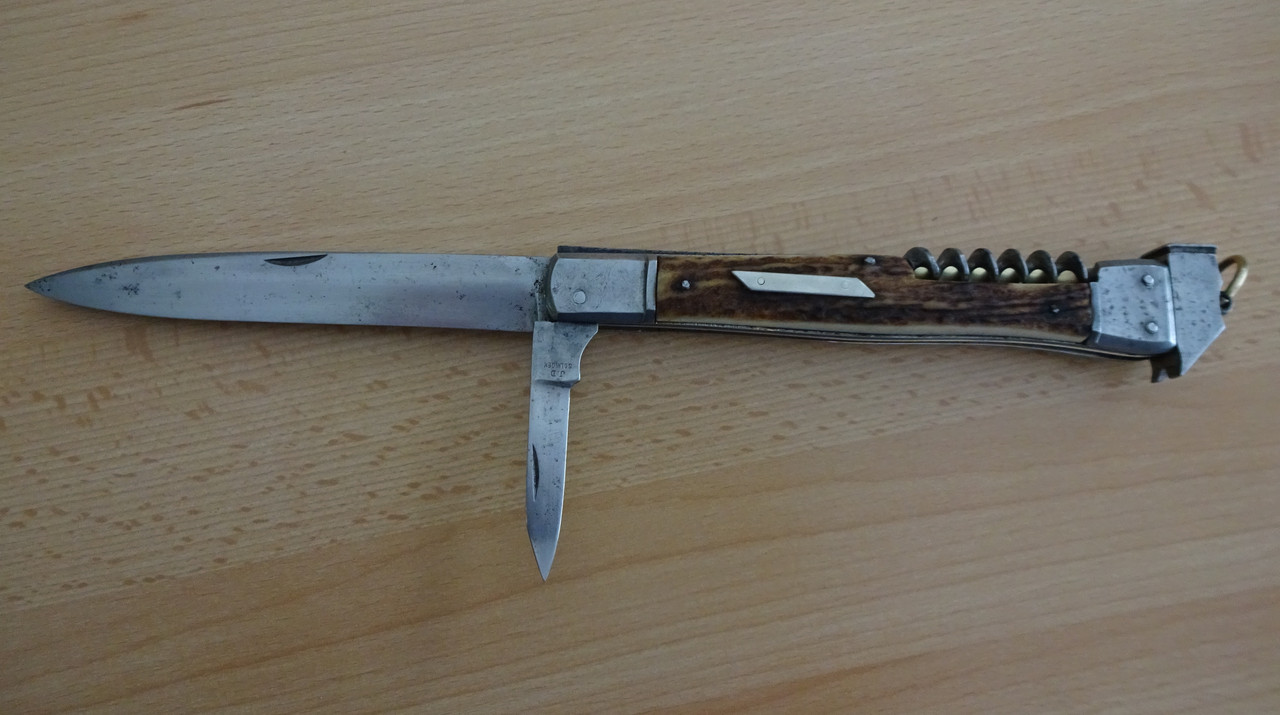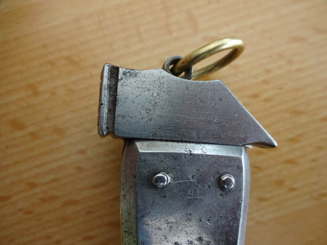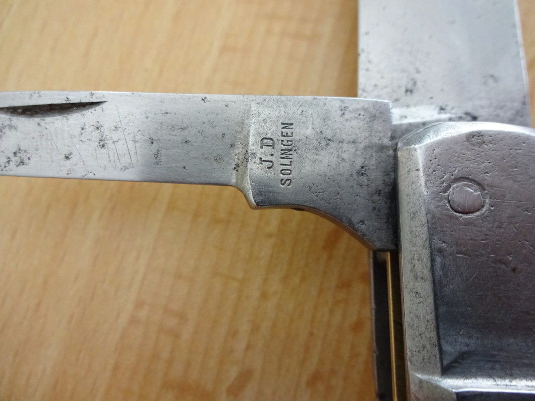 Der Name, seltsam verstümmelt, als müsste man an der neuen Nation noch üben, passt nicht auf das Rikasso des kleinen Federmessers. Während die große Hauptklinge ohne Stempel blieb. Meine Vermutung: In den ersten Jahren 1919ff wurden vorhandene Teile verarbeitet und um die kleine Klinge ergänzt.