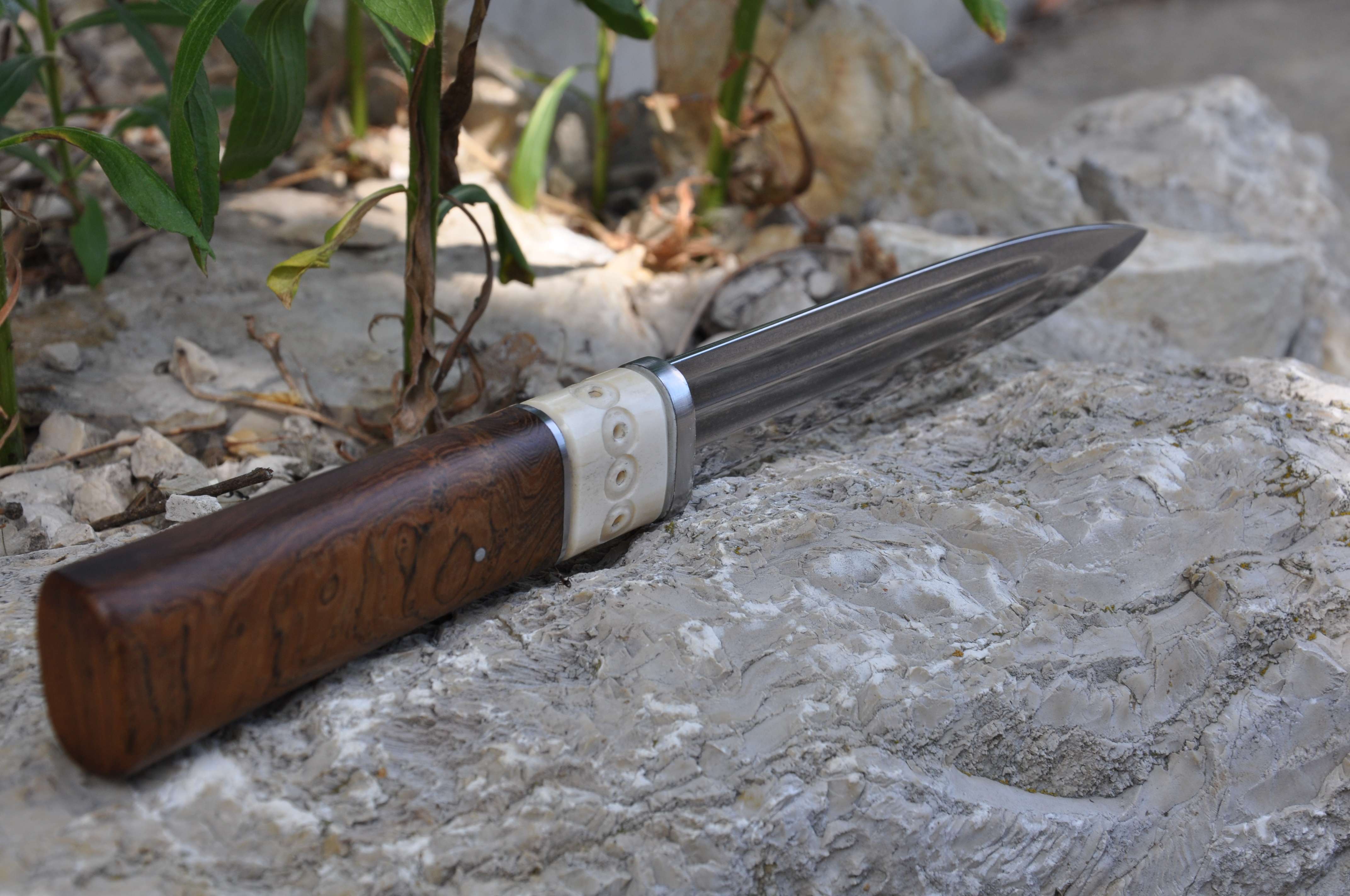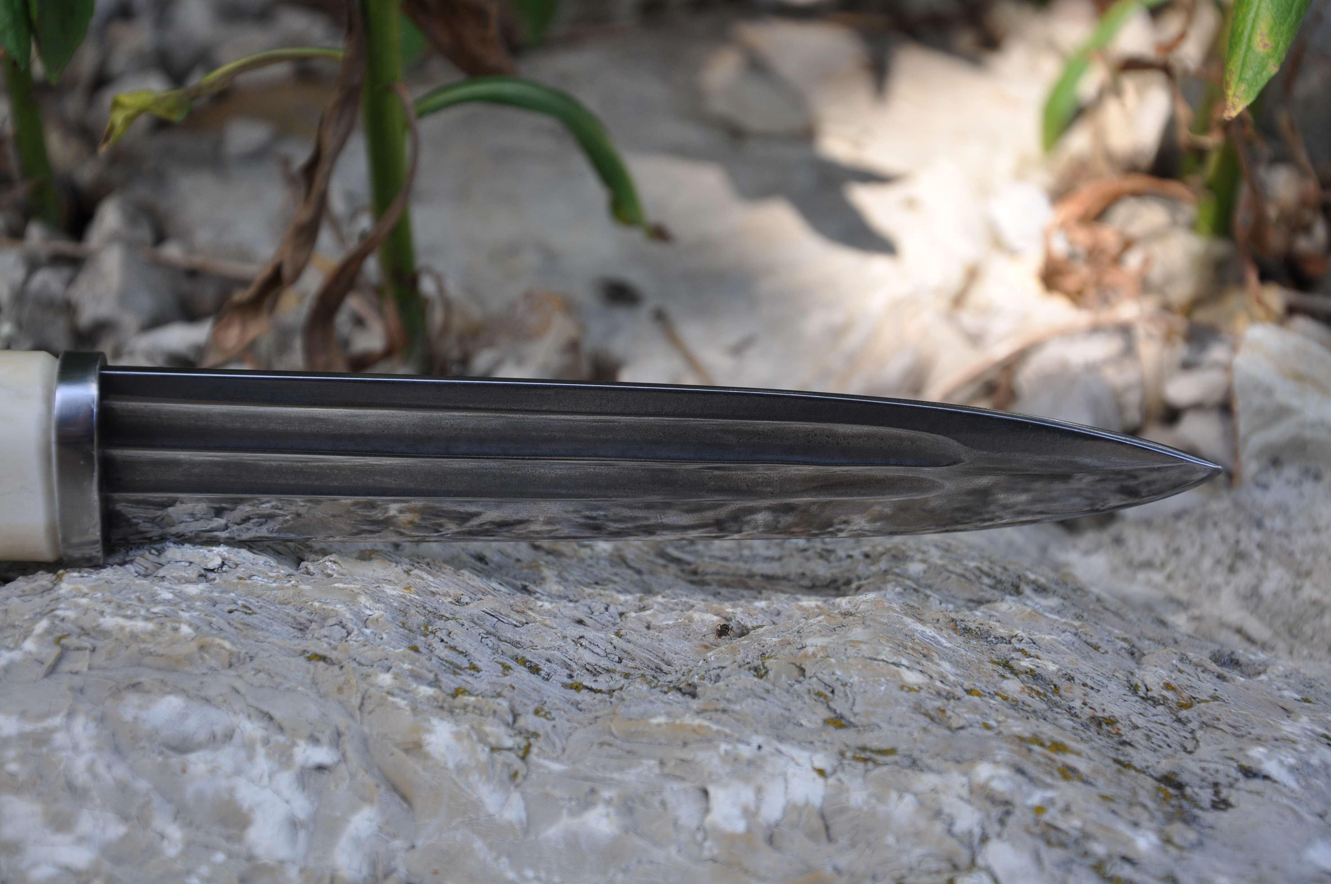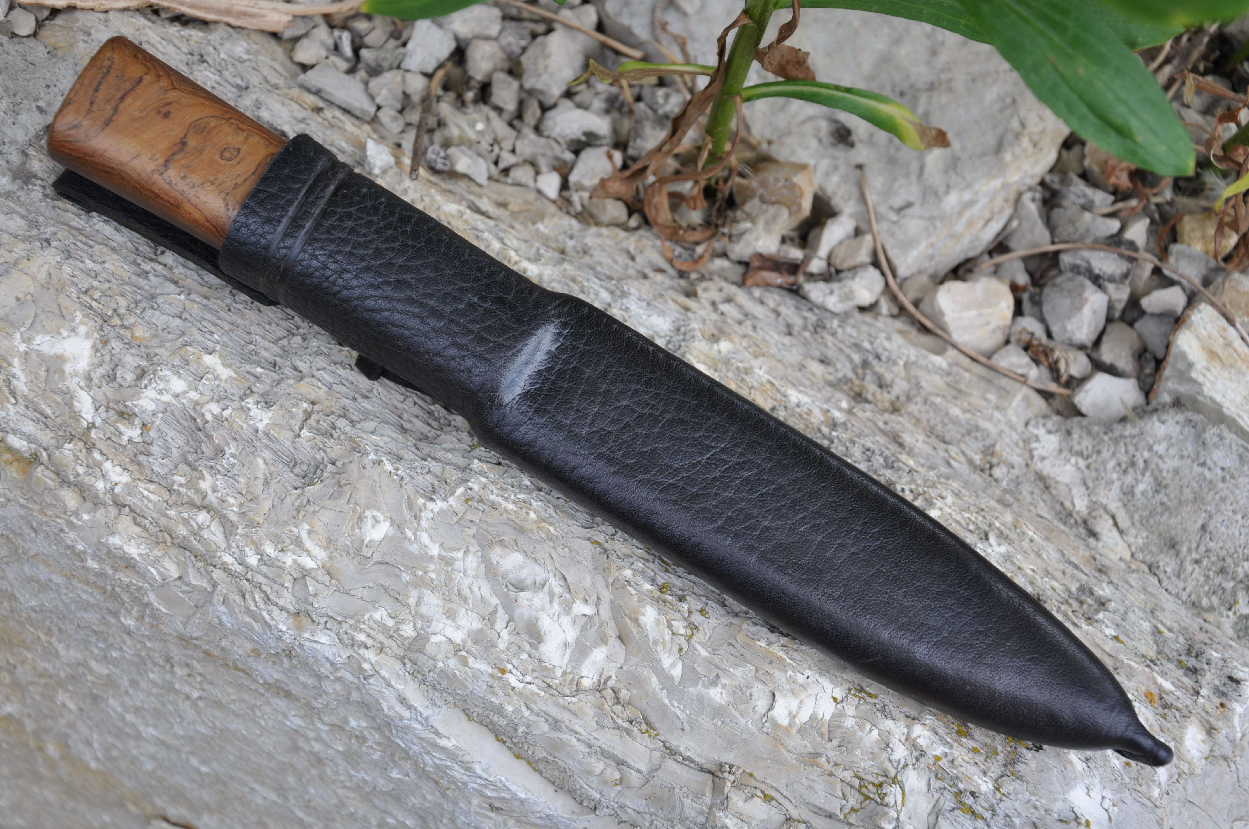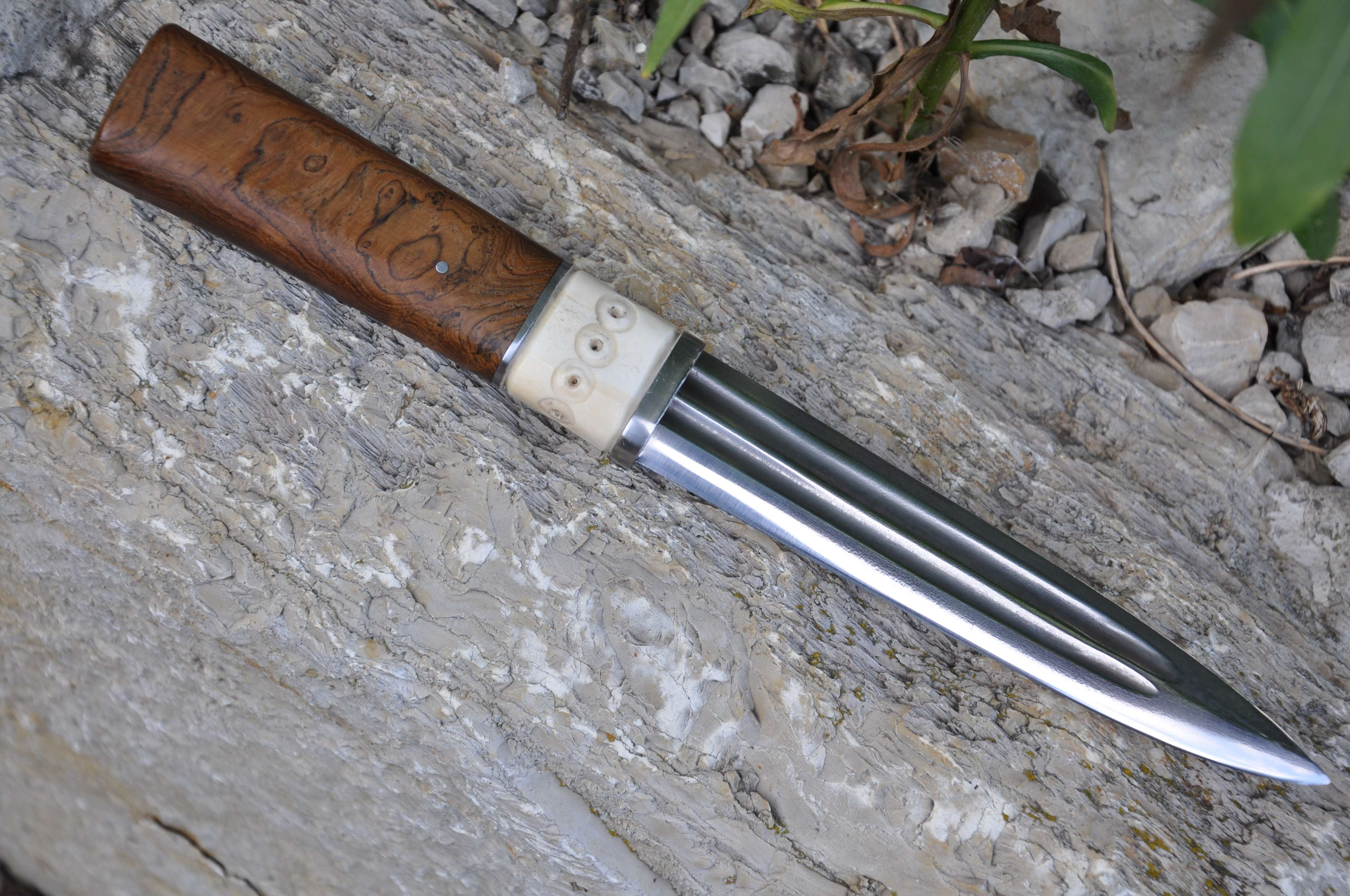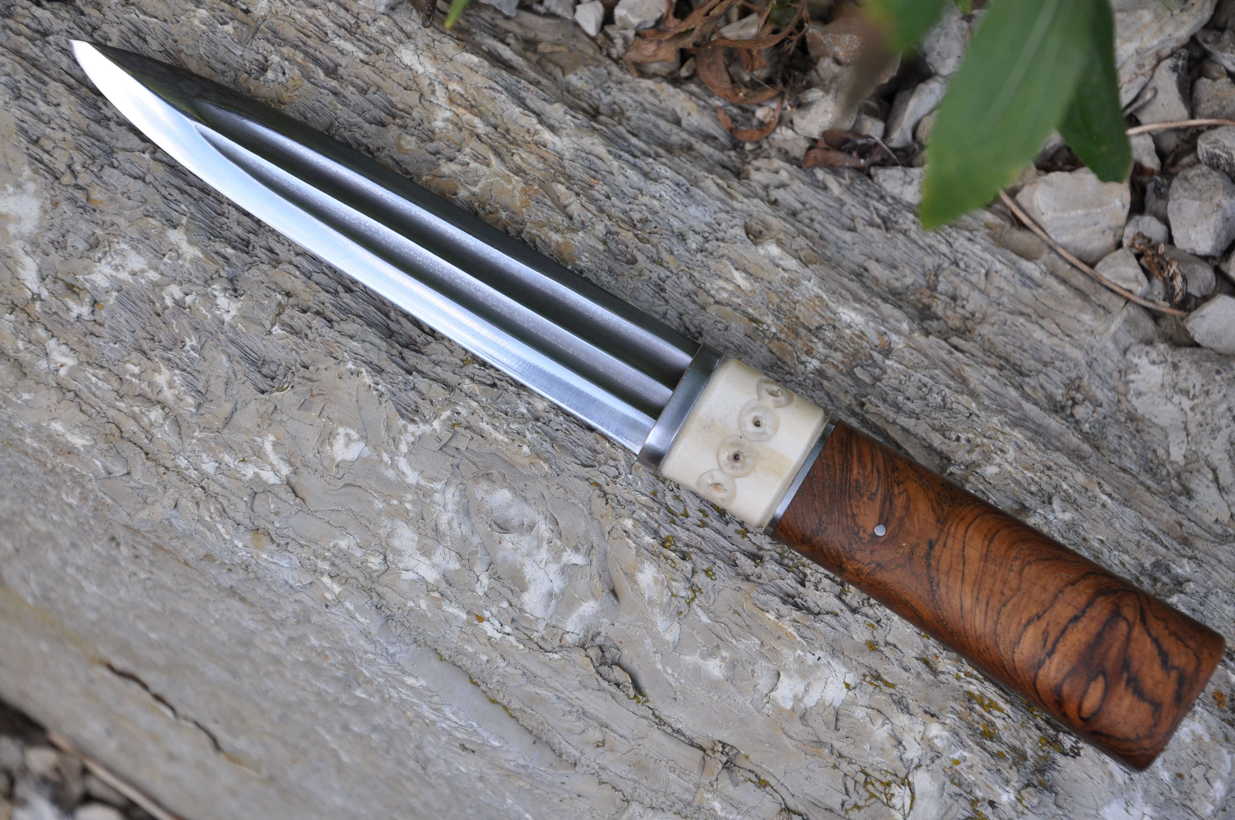 da die Klinge eine recycelte Spitze eines Rapiers ( Oder gerader Degen. Kenne mich bei den dünnen Dingern nicht so aus ) ist. Und die Form eines kleinen Saxes hat, nenne ich es einfach Messer.