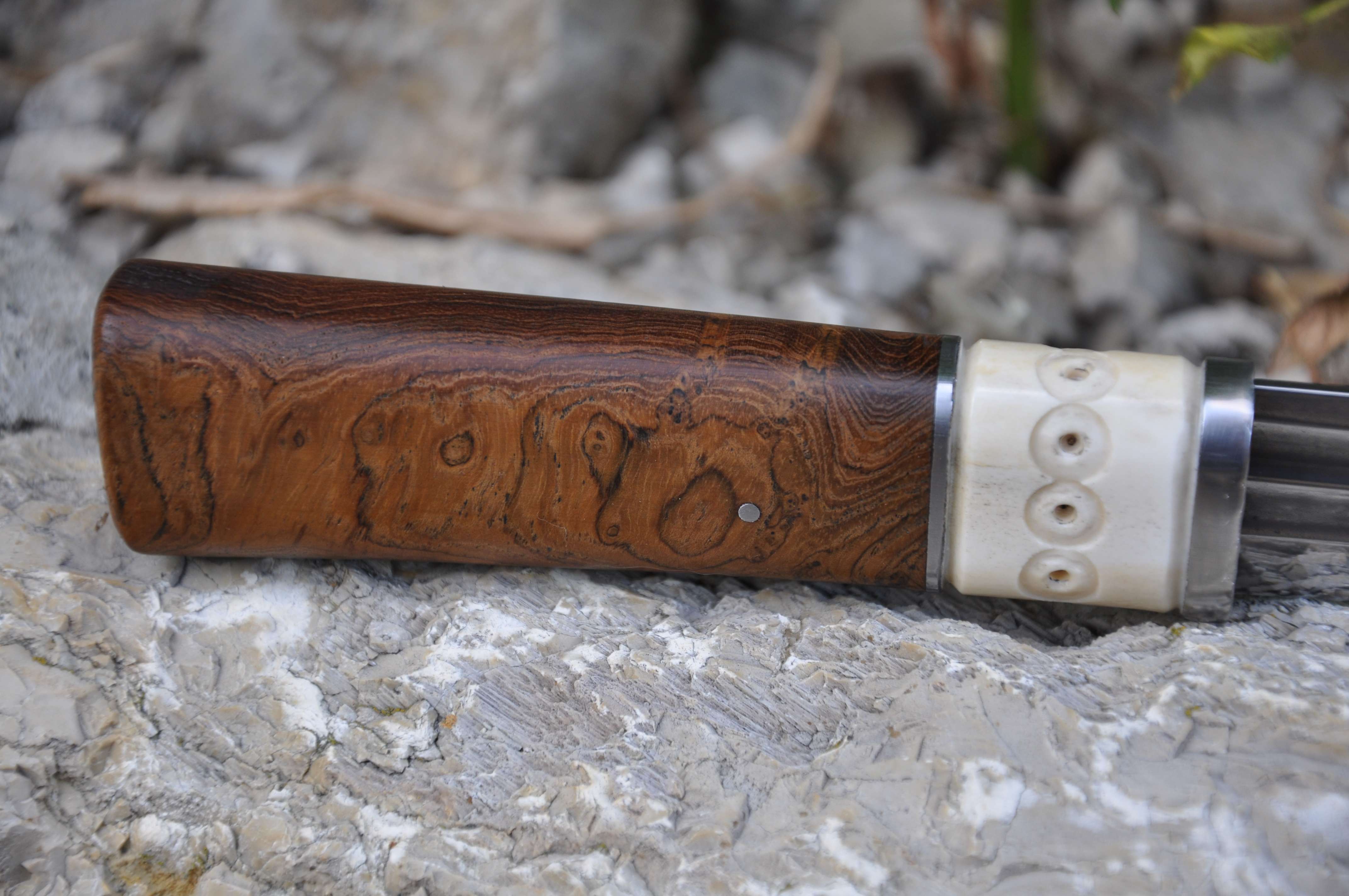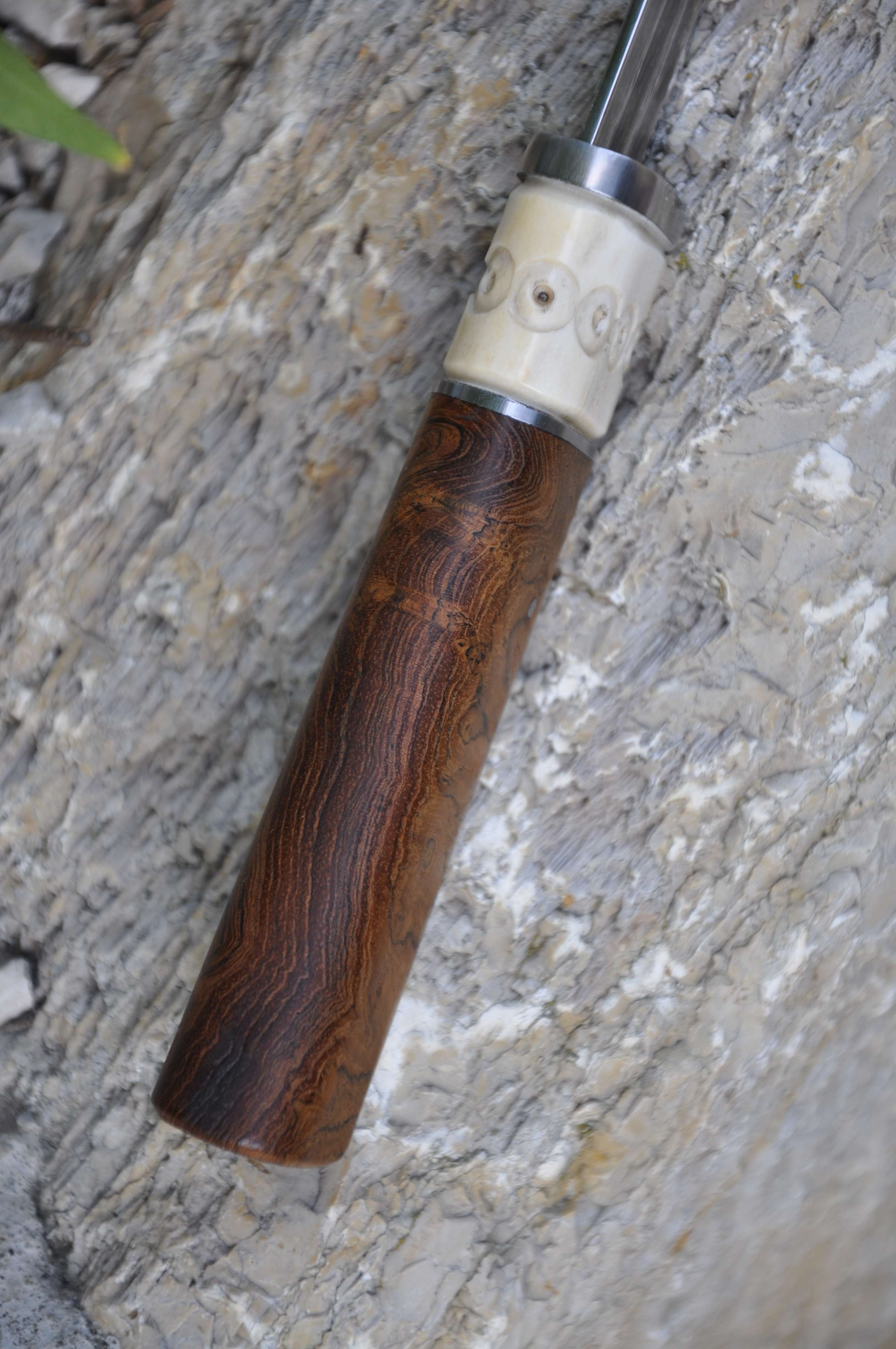 Griff ist aus Olivenholz, Rentier und Stahl.