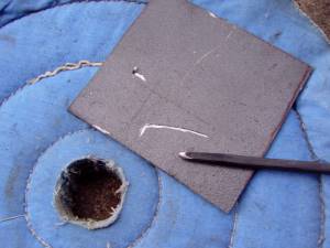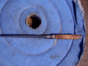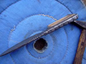 Kurze Anleitung: Stahl (1.2552 Reststück 6x8x120mm) in Form schmieden, Spitze schleifen, Härten und Anlassen wie bei einem Steinmetzeisen. Ist nicht das Beste aber auf die Schnelle ausreichend und geht durch Stahlblech wie durch Butter.