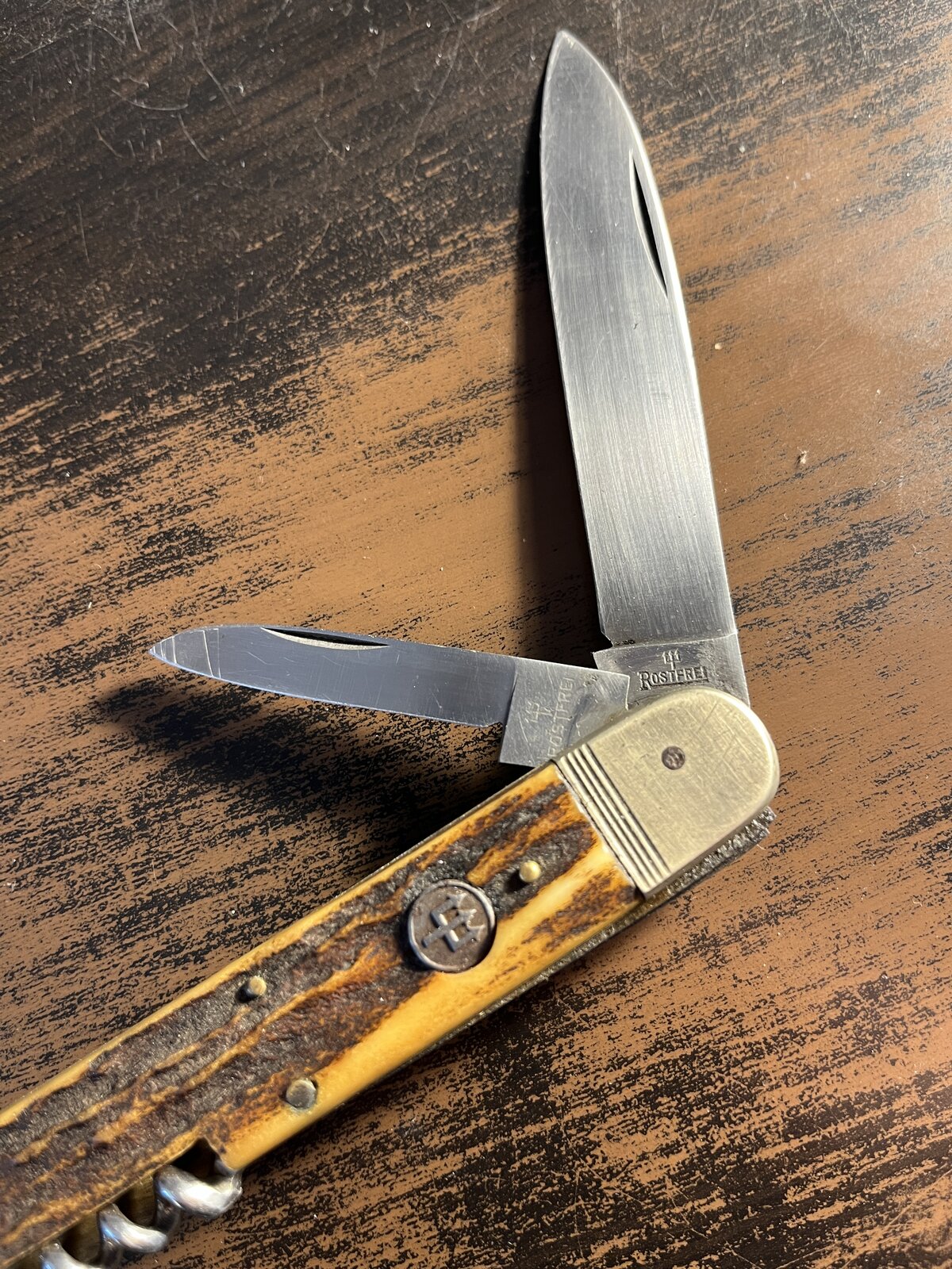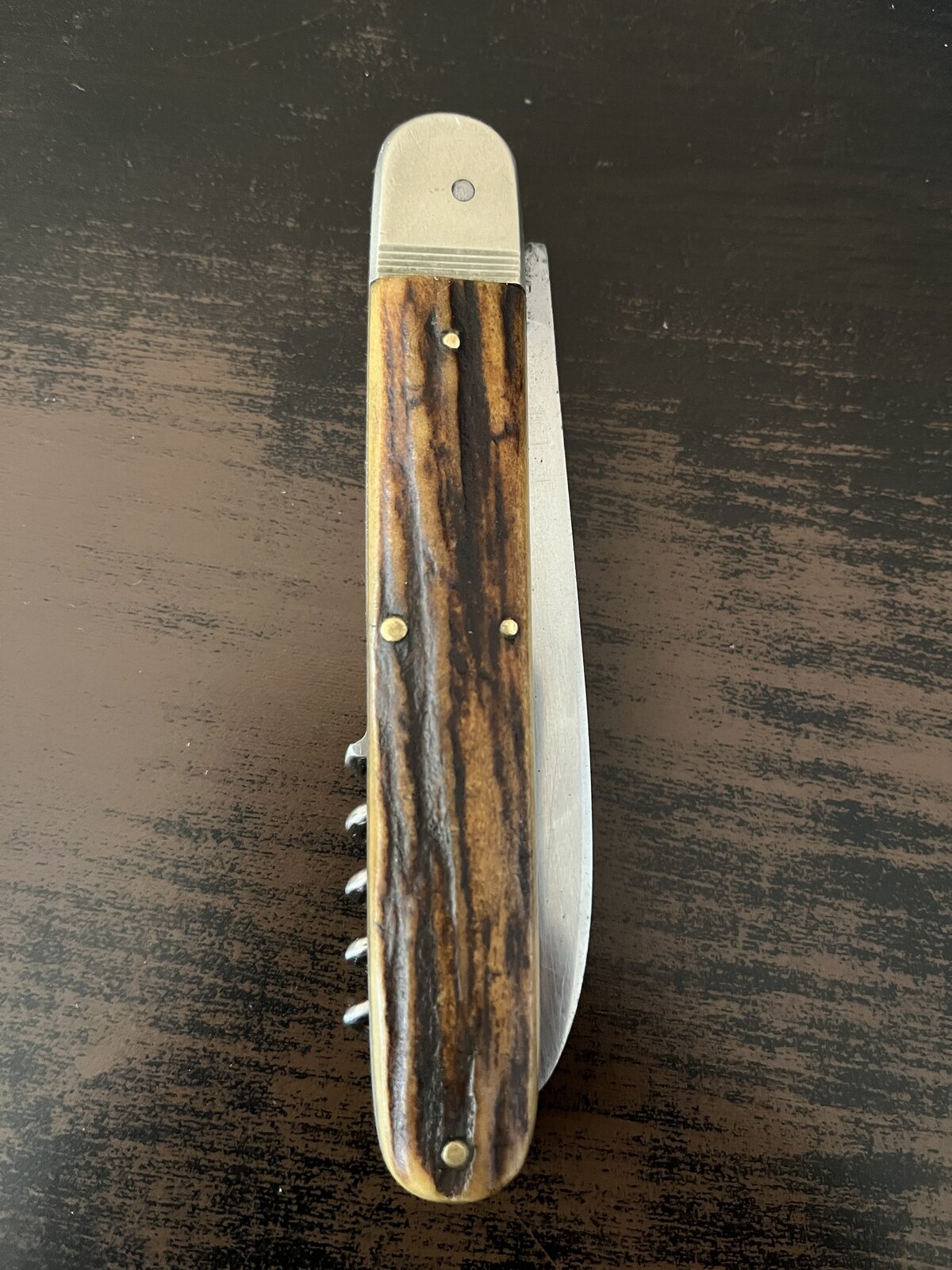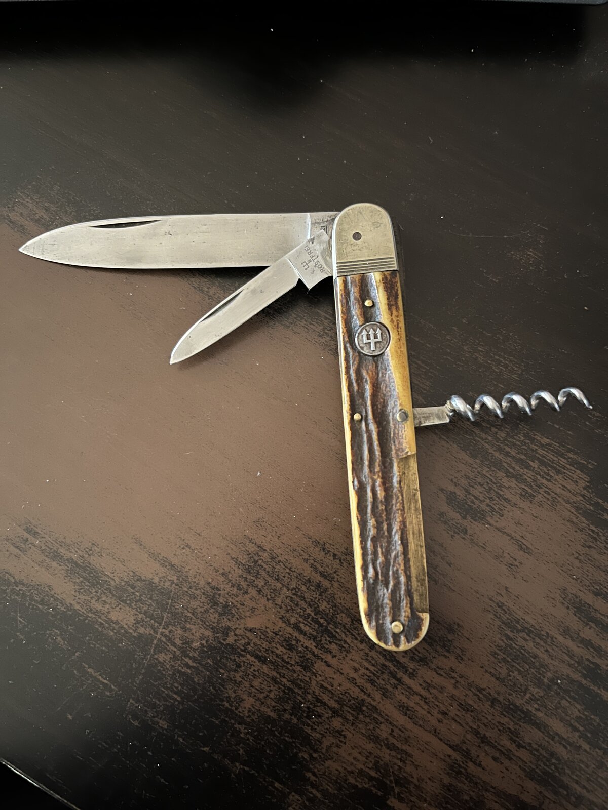 das ist mal wieder Solingen in ReinkulturEinige Wochen davor hatte ich schon mal ein Federmesserdrücker von Ed. Wüsthof schnappen können. Auch gute 120mm Grifflänge, Hirschhornschalen und 3-Teiler.