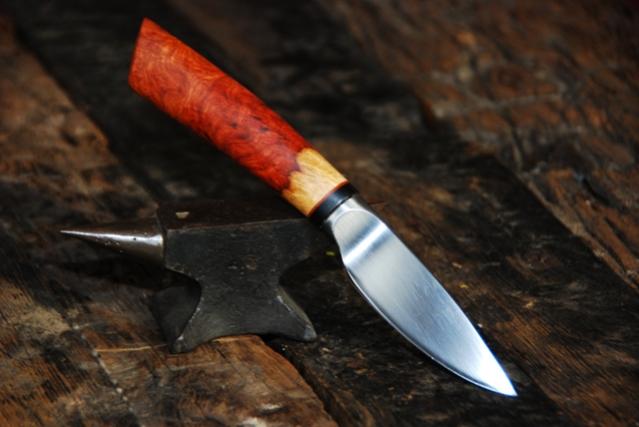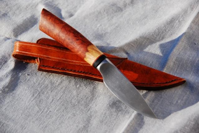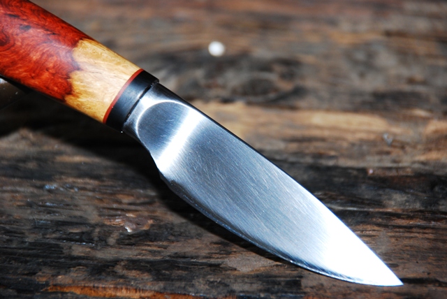 , war ich der Meinung, dass diese Woche nicht nur Schrott die Werkstatt verlassen sollte. Hier mein Frustmesser:Klinge geschmiedet aus 1.2842 und 105mm lang davon 90mm scharf. Am Rücken ist sie 4mm stark und läuft zur Spitze aus. Klingenbreite 30mm.