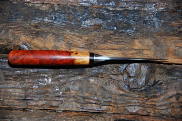 Griff ist aus Amboina und Büffelhorn mit einer Fibereinlage.