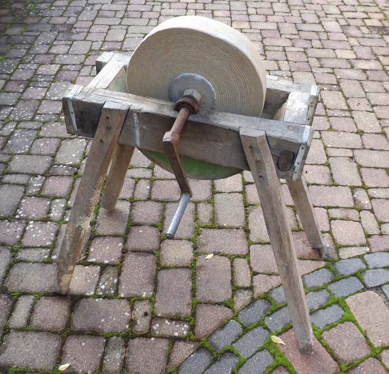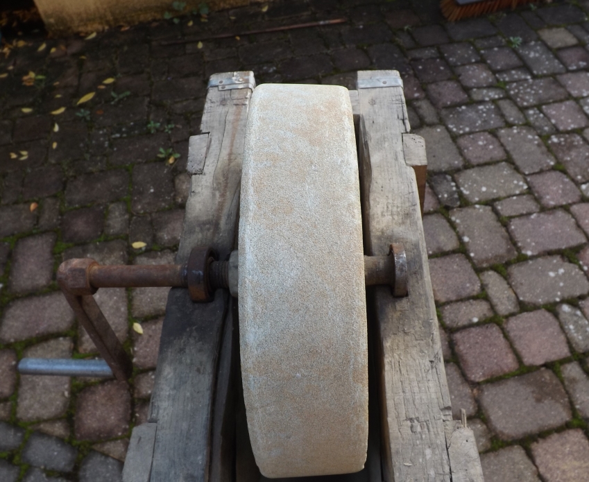 Mein Urgroßvater und manchmal auch noch mein Großvater hat, so hab mich mir erzählen lassen, auch noch so einen runden Sandstein gehabt, den dann einer drehen durfte, während der andere die Werkzeuge schliff, leider ist dieses Erbstück nicht erhlten geblieben und leider gibt es bei uns in der Familie keinen GBB. Mein Vater hat mir erzählt, dass der Stein sehr unruhig lief und auch geeiert hat.