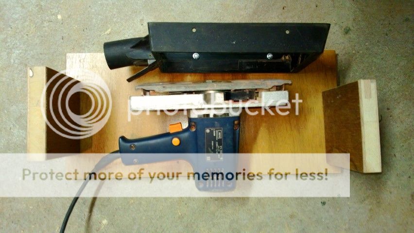 Heute konnte ich ihn dann im Empfang nehmen und war auch gleich etwas fleißig. Ich habe ein Gehäuse gebaut, um den Schleifer "falsch" herum zu halten, also mit der Schleifplatte nach oben.