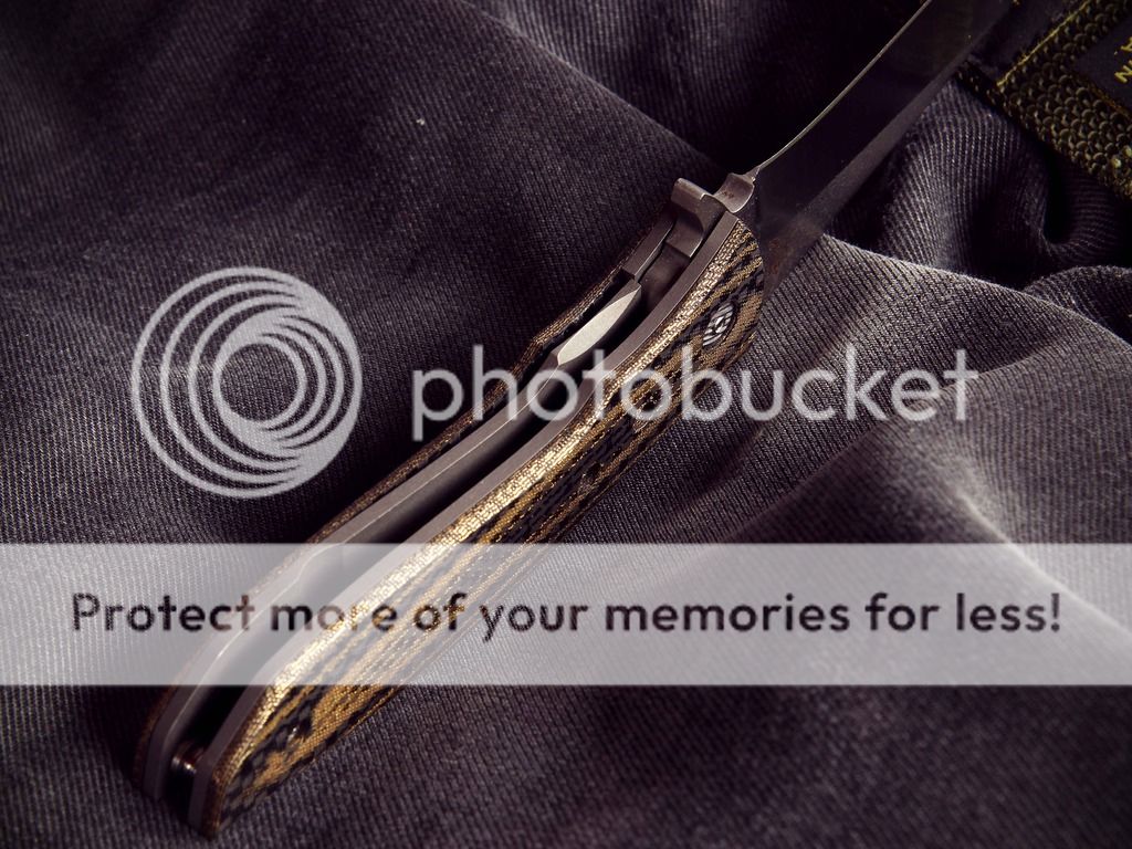 Das erste was aufgefallen ist: Cooles Griffmaterial- aber was piekst da in der Hand?! ...ganz genau. Aus diesem Laminat aus Carbon und feinem Messing-Gewebe lösen sich drähte bis zu einer Länge von knapp 1mm und pieksen was das Zeug hält. Das ist nicht nur unangenehm in der Hand, es nervt auch TIERISCH wenn man das Messer einfach in die Hosentasche stecken will. Dabei wurden nämlich fast immer ein zwei Fäden gezogen, die dann irgendwie in der Griffschale hingen. Super Sache das Zeug.