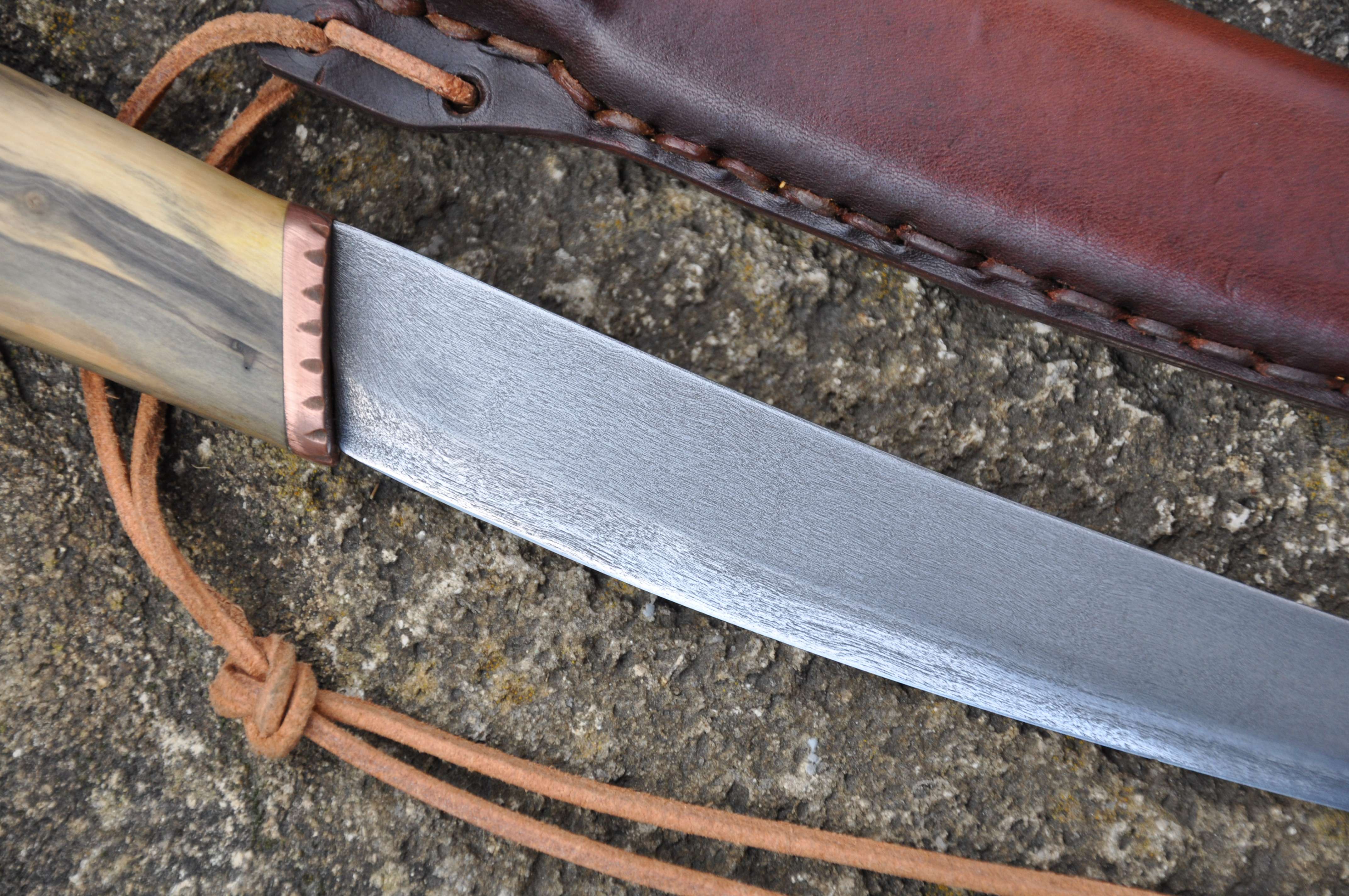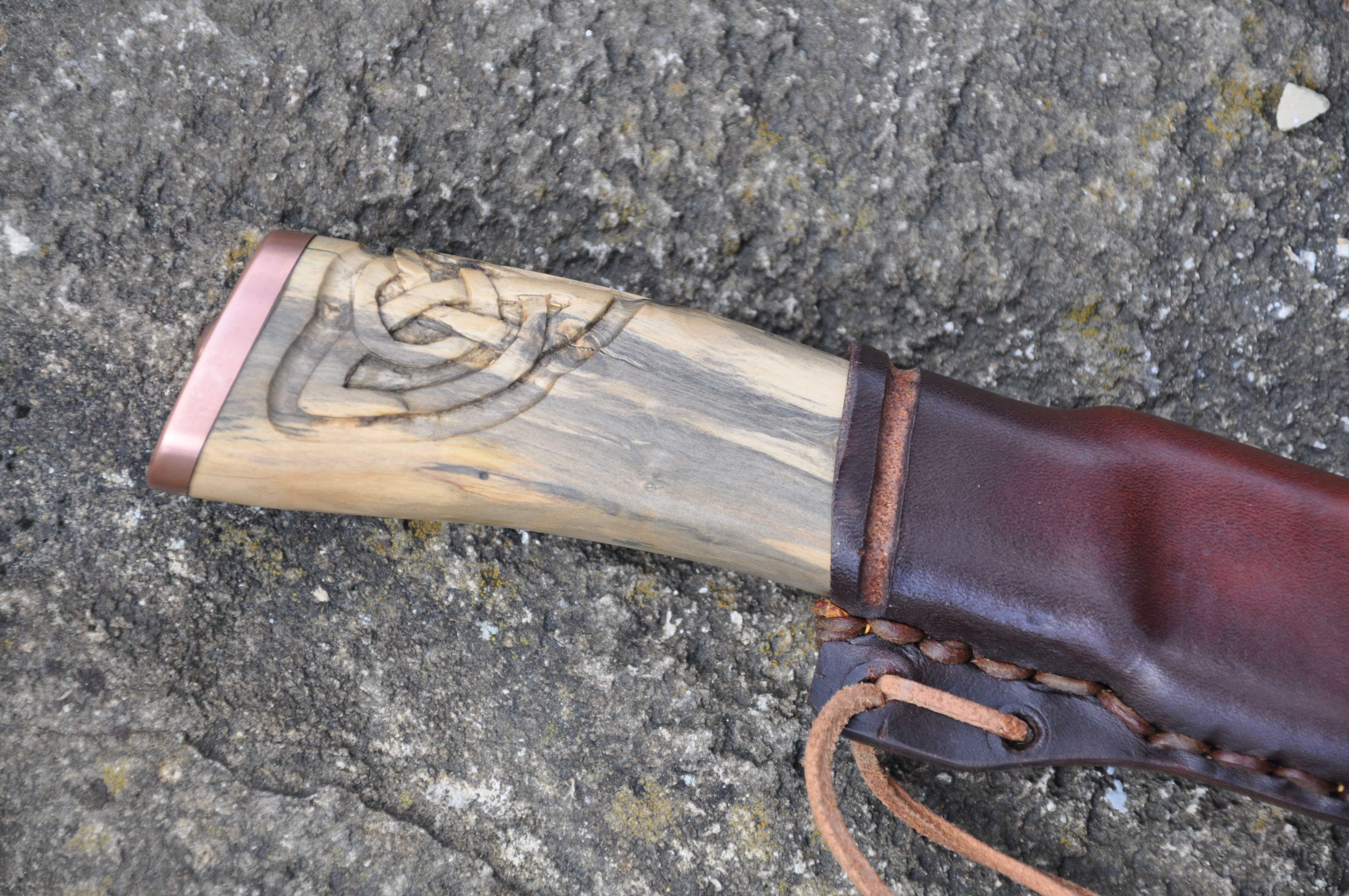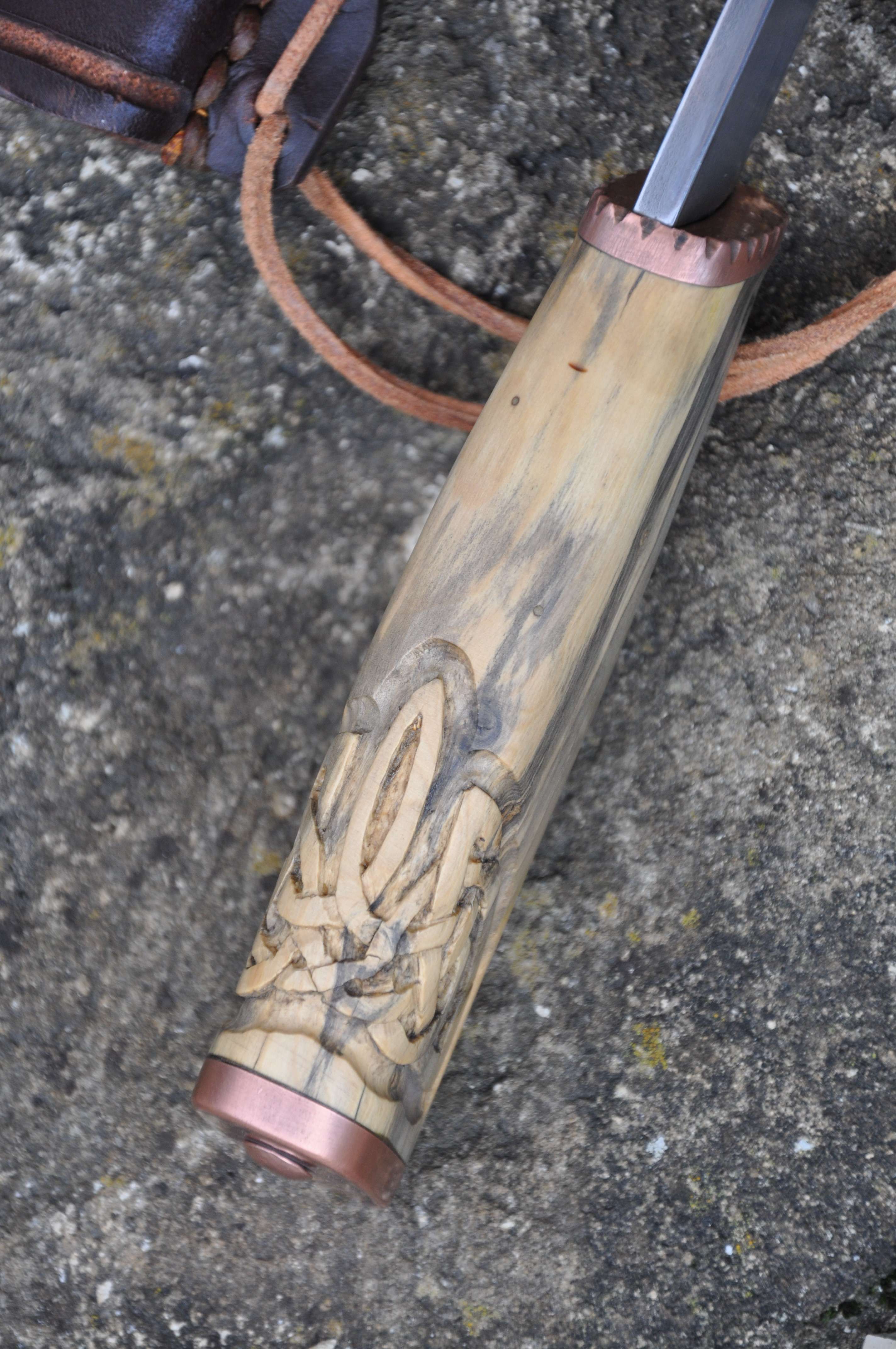 Der Griff ist aus Buchsholz mit Bläue. Die Metallelemente sind aus Kupfer.