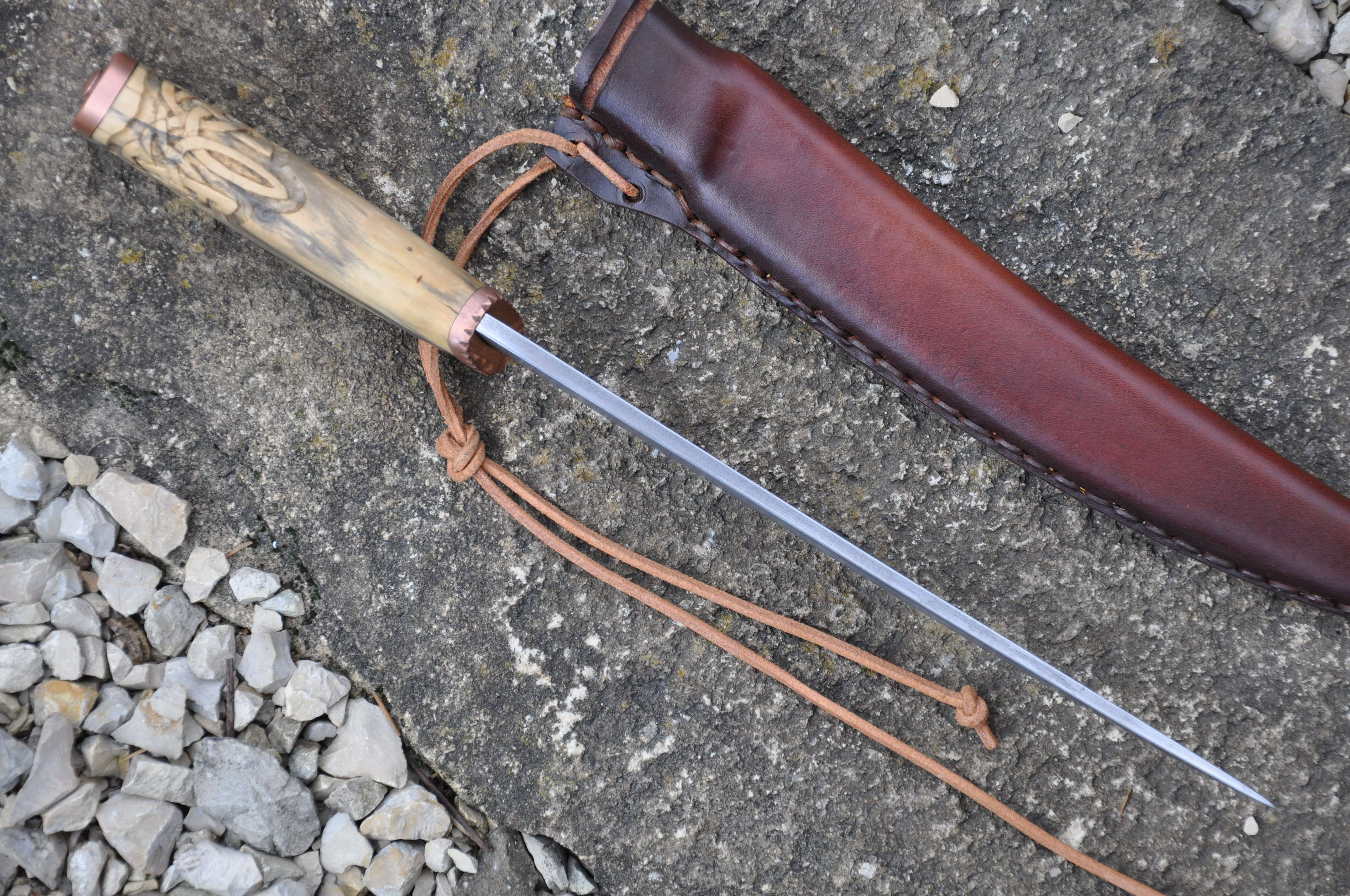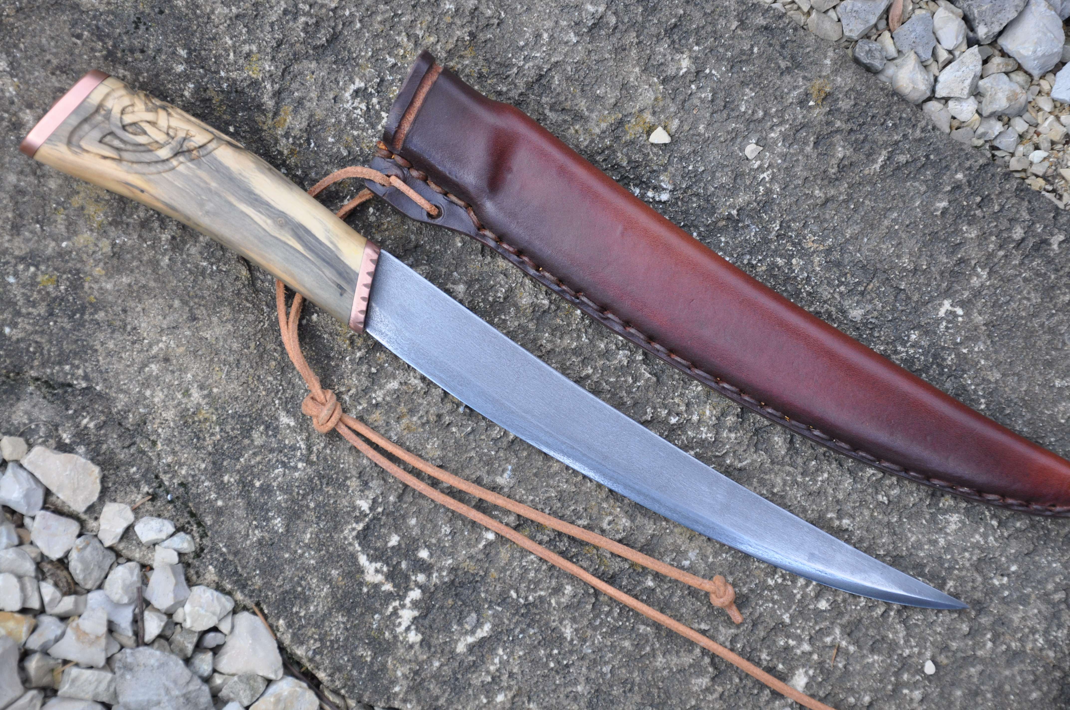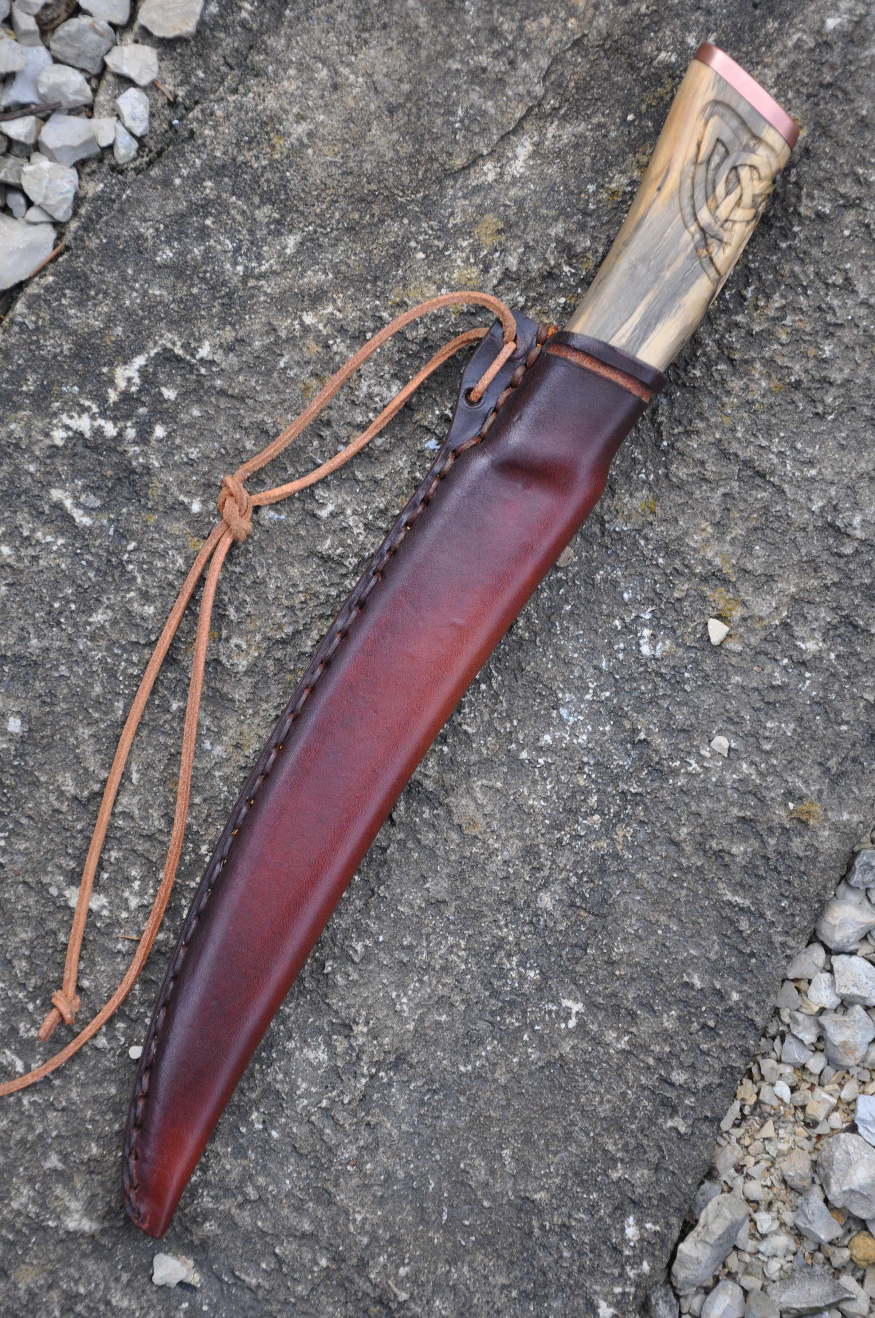 Der Griff ist aus Buchsholz mit Bläue. Die Metallelemente sind aus Kupfer.