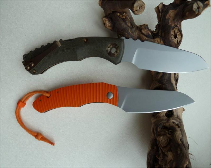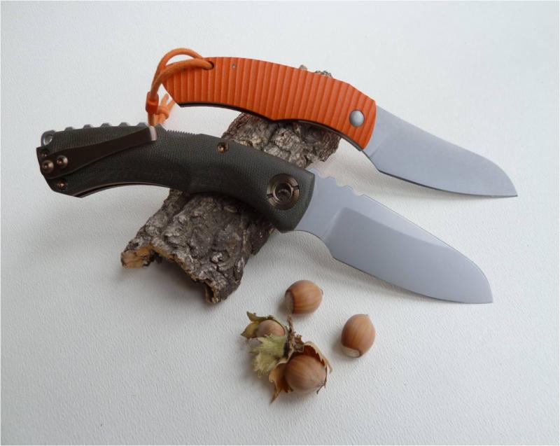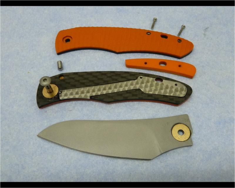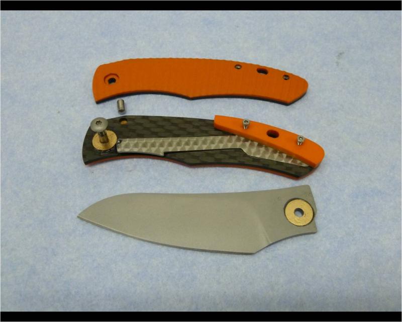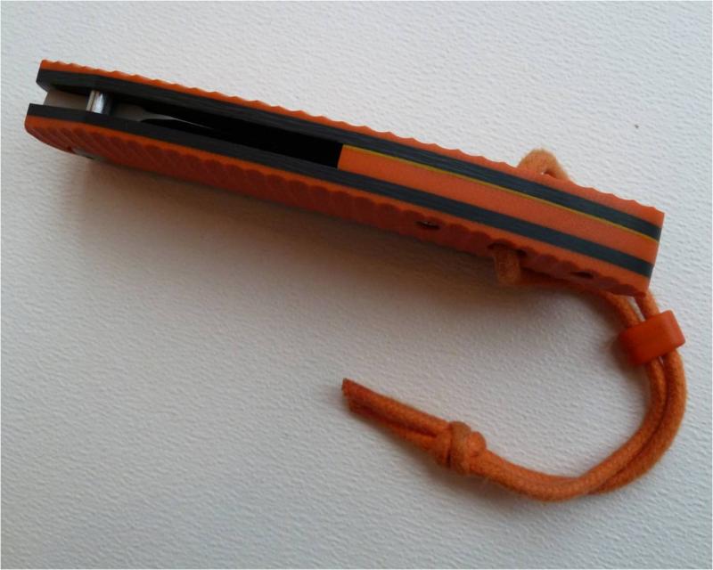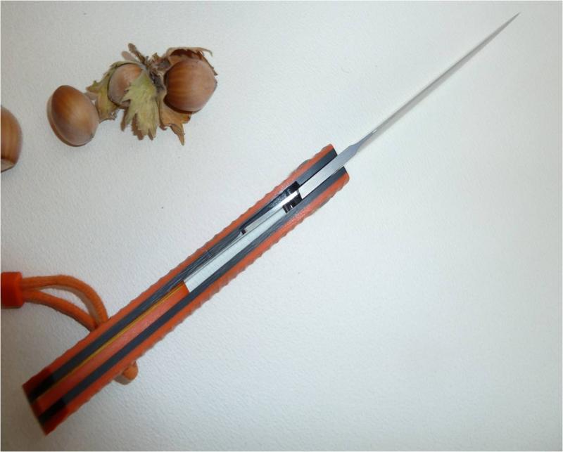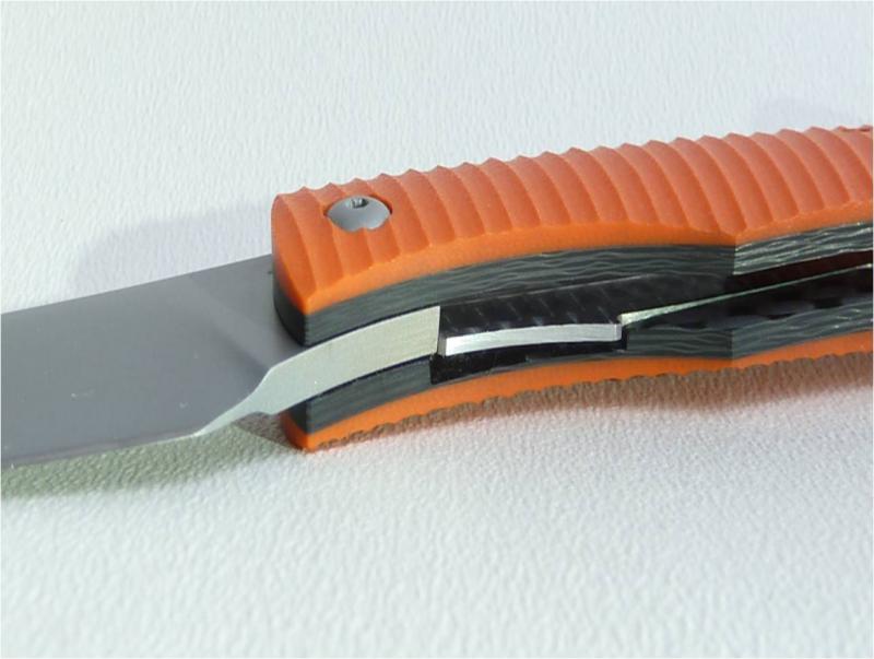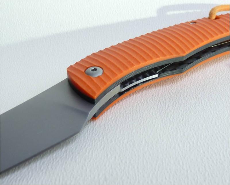 o Griff: G10 orange, Carbon; konturiert; 13,5 mm dick; 112mm lang