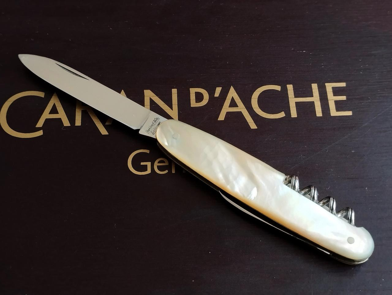 Griff 10,8 cm, Hauptklinge 9 cm, ergeben ein ausgewachsenes Messer von rd. 20 cm. Konnte /kann da ein anderer Solinger Hersteller mithalten? Mehr noch: Verhältnis Griff : Klinge hat mit Faktor 1,2 bereits Froberg-Werte. Wer brachte / bringt mehr Kinge im Griff unter?