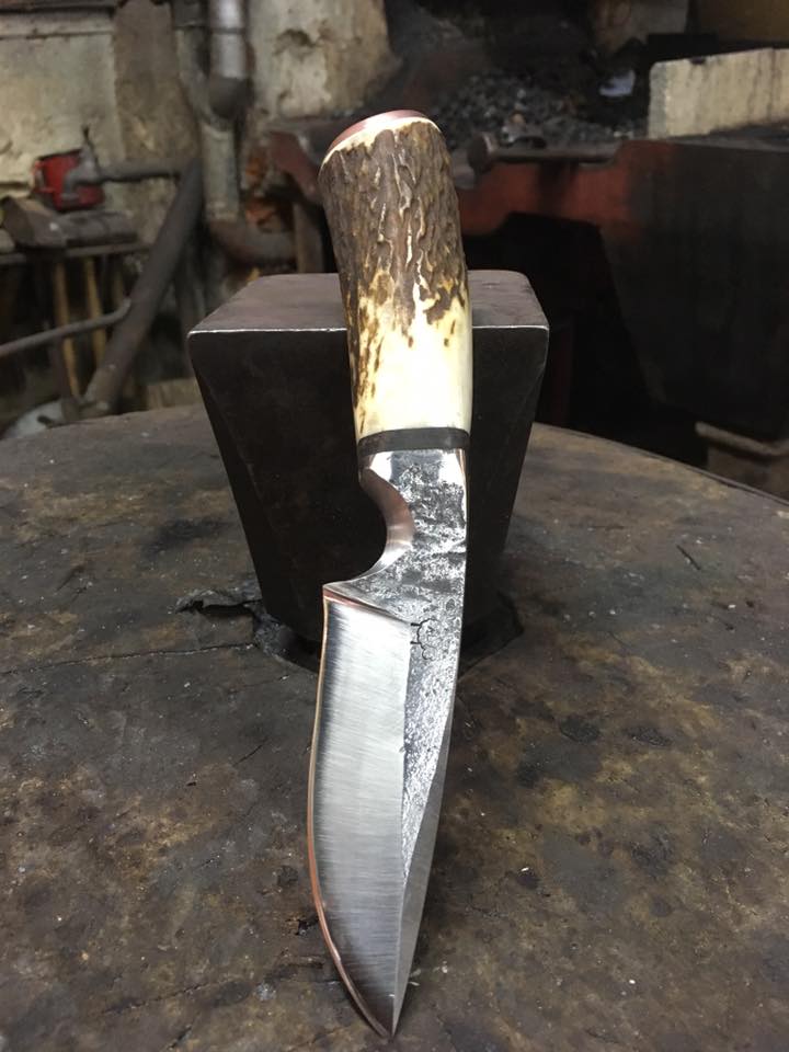 4. Und dann noch "meine" Art von Jagdmessern geschmiedet: Silberstahl roh geklopft und dann mit Horngriff zum Messer verbaut....praktisch ein sehr grobes Halbintegral. Der Silberstahl wird wirklich sehr scharf, ich bin überrascht