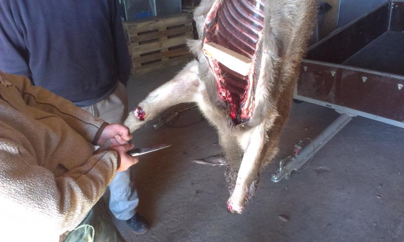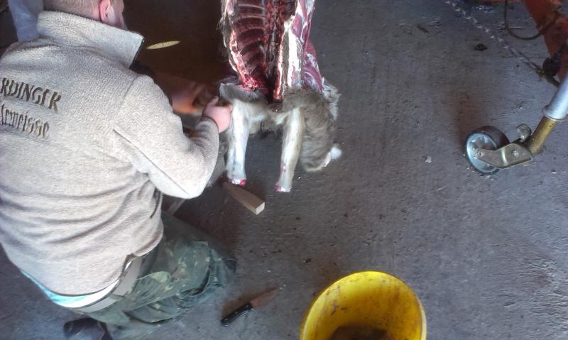 ich hole diesen Thread nochmal hoch, um nicht extra einen neuen aufzumachen. Das Jagdmesser hatte gestern seinen ersten Einsatz und hat sich gut geschlagen. Wir haben einen Hirschen abgezogen und zerlegt. Mein Vater und ich haben etwas Zuarbeit geleistet.