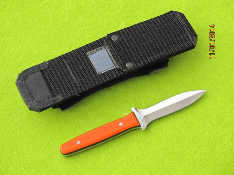 3."Boot Knife" mit schwarzer Carbon/oranger G10 Beschalung