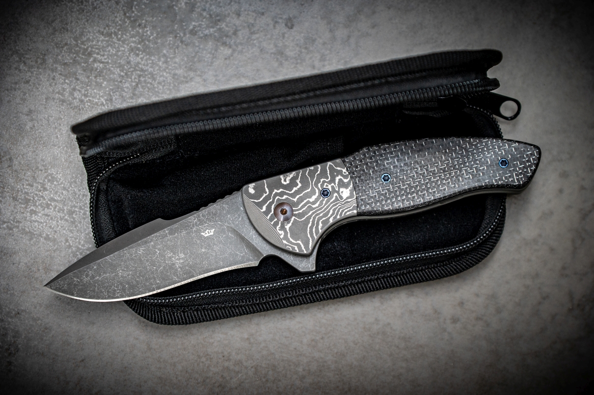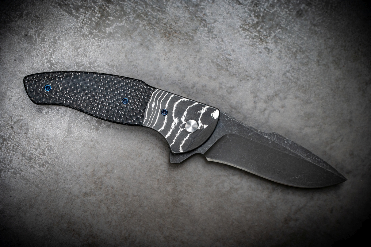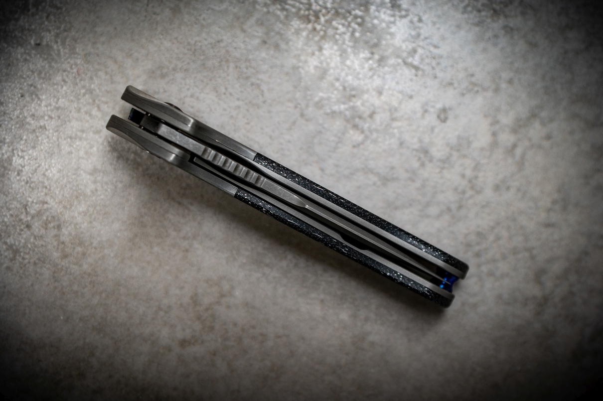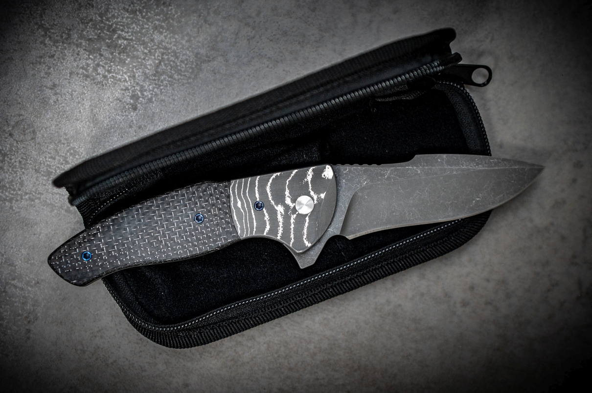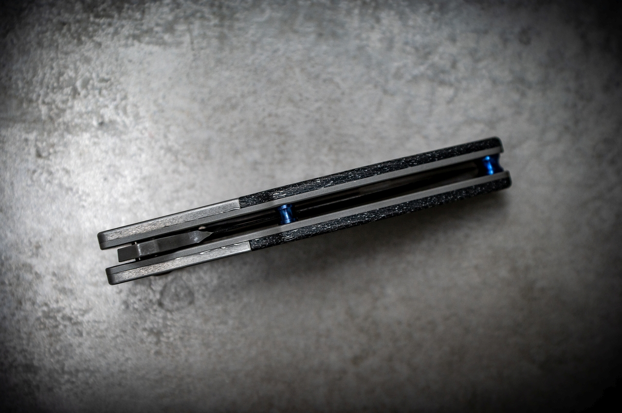 belegt mit C-Lightning Strike Carbon, verschraubt mit gebläuten Titanschrauben