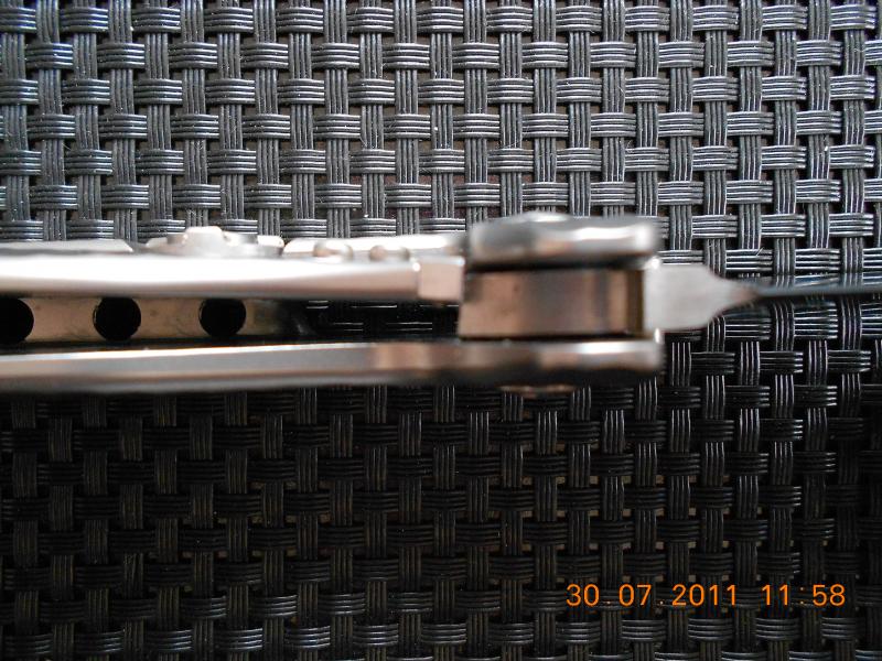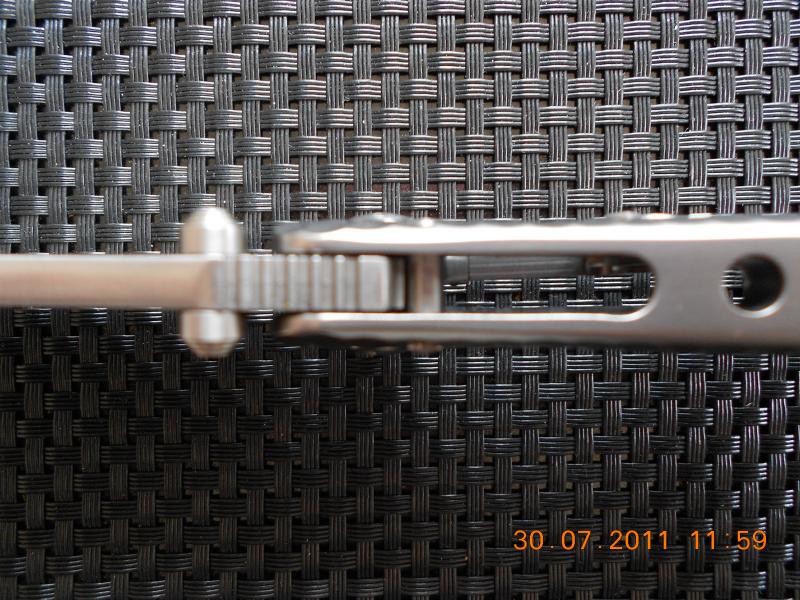 Ich habe den youtube Bericht über das SR1 gesehen, es ist aus einem Monoblock-Titan gefräst, wie das Lochsa von Scott Cook und es hat noch weitere gute Features, wie z.B. die Klingenverrieglung und was mir vor allem auffiel, dass an der Klingenarretierung 2 Schrauben angebracht sind, damit die Klinge nicht am Titan anliegt, sonder gegen eine Stahl Halterung abgestützt wird.