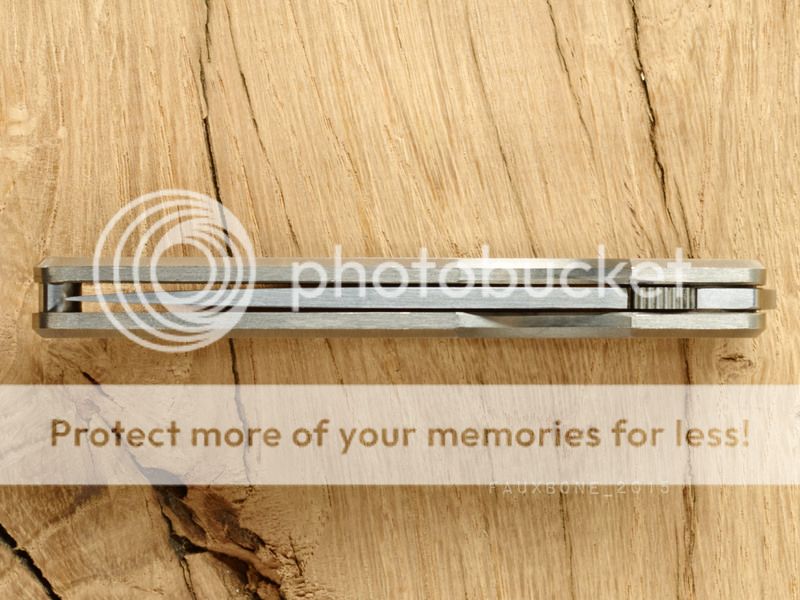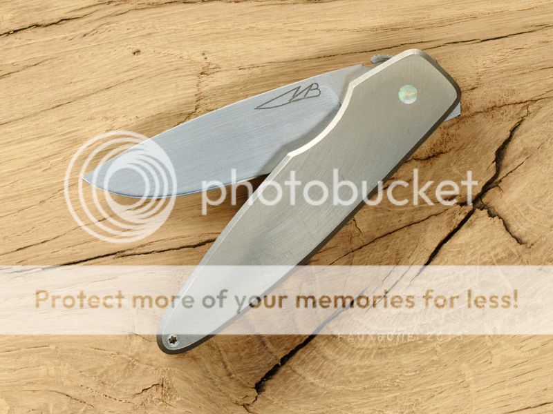 Markus Becker Titan Folder mit seiner patentierten Radialverriegelung. Perlmutteinsatz zur Abdeckung der Klingenachse.