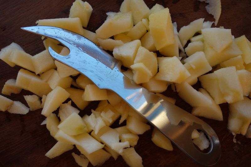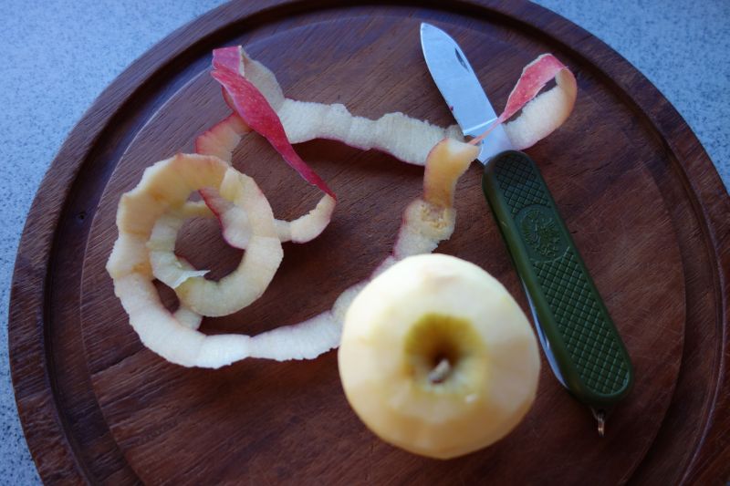 Der heutige Morgen begann so, wie zu sehen ist: Bestens! Auch Johnny war erfreut. Bei der Apfelschälung zeigte das Grüne seine ganze Leistungsfähigkeit. Es gelang ohne Zirkus, die Schale in einem Stück vom Ausgangsprodukt zu entfernen. Mit dem kleinen Scharfen haben wir dann den Rest der Apfelteilung vollzogen und uns im Anschluß das Müsli mit dem sehr dafür geeigneten Löffel reingeschaufelt. Danach sind wir weg zu Augusto, wo wir uns allerdings wieder mit allerhochedelstem Stahl auseinandergesetzt haben. Ihr werdet schon sehen …