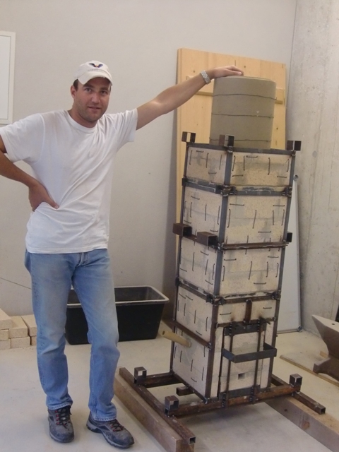 Der Ofen wird aus drei Teilen bestehen, welche ich mit den Transportösen und zwei Eisenstangen übereinander platzieren kann.