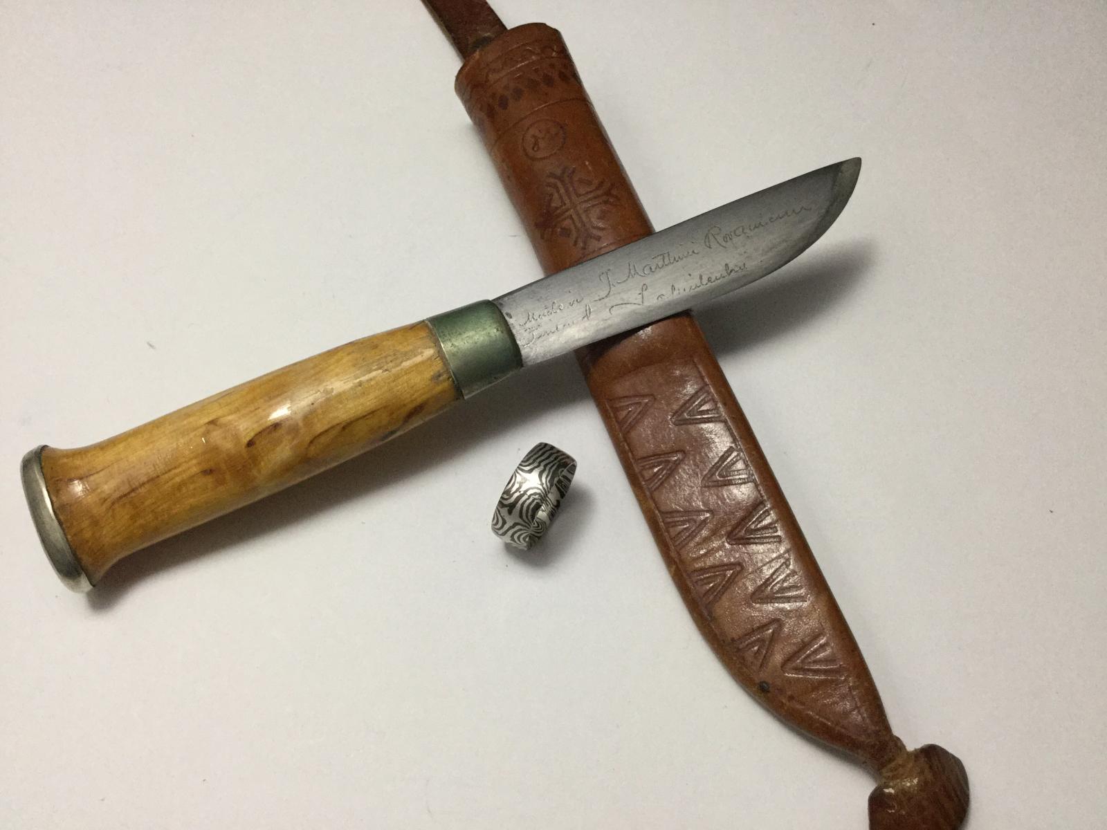 Das Messer stammt verbrieflich aus Finnland, und zwar vom Polarkreis, wo mein Vater es auf einer seiner Reisen als junger Mann vor 60 Jahren erwarb!!! Die Affinität meiner Familie zu Skandinavien zeigt sich ja nicht zuletzt in den männlichen Vornamen unseres Familienstammbaumes.