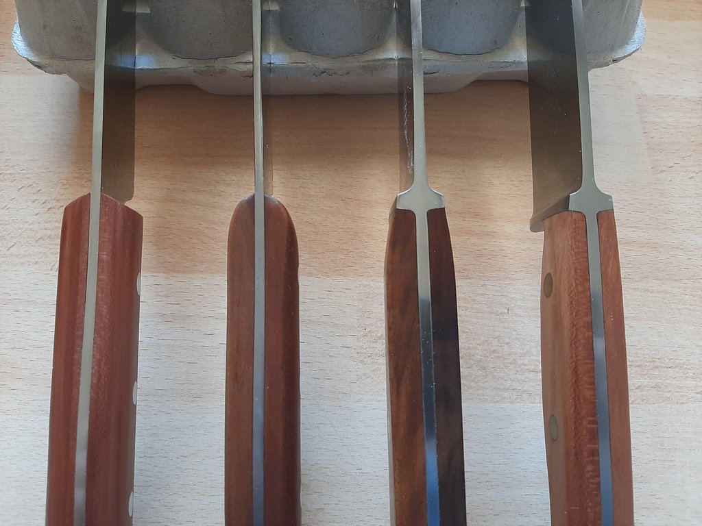 Nun zum Punkt: Meine Frau ist als Hauptnutzerin dieser Messer absoluter Herder-Fan und nutzt nichts anderes. Ihr würde all das vermutlich nicht aufgefallen sein bzw. sie würde sich nicht darüber ärgern. Ich habe schon oft den Versuch unternommen, ihr meiner Meinung nach „hochwertigere“ Messer unterzujubeln, was bislang nicht von Erfolg gekrönt war.