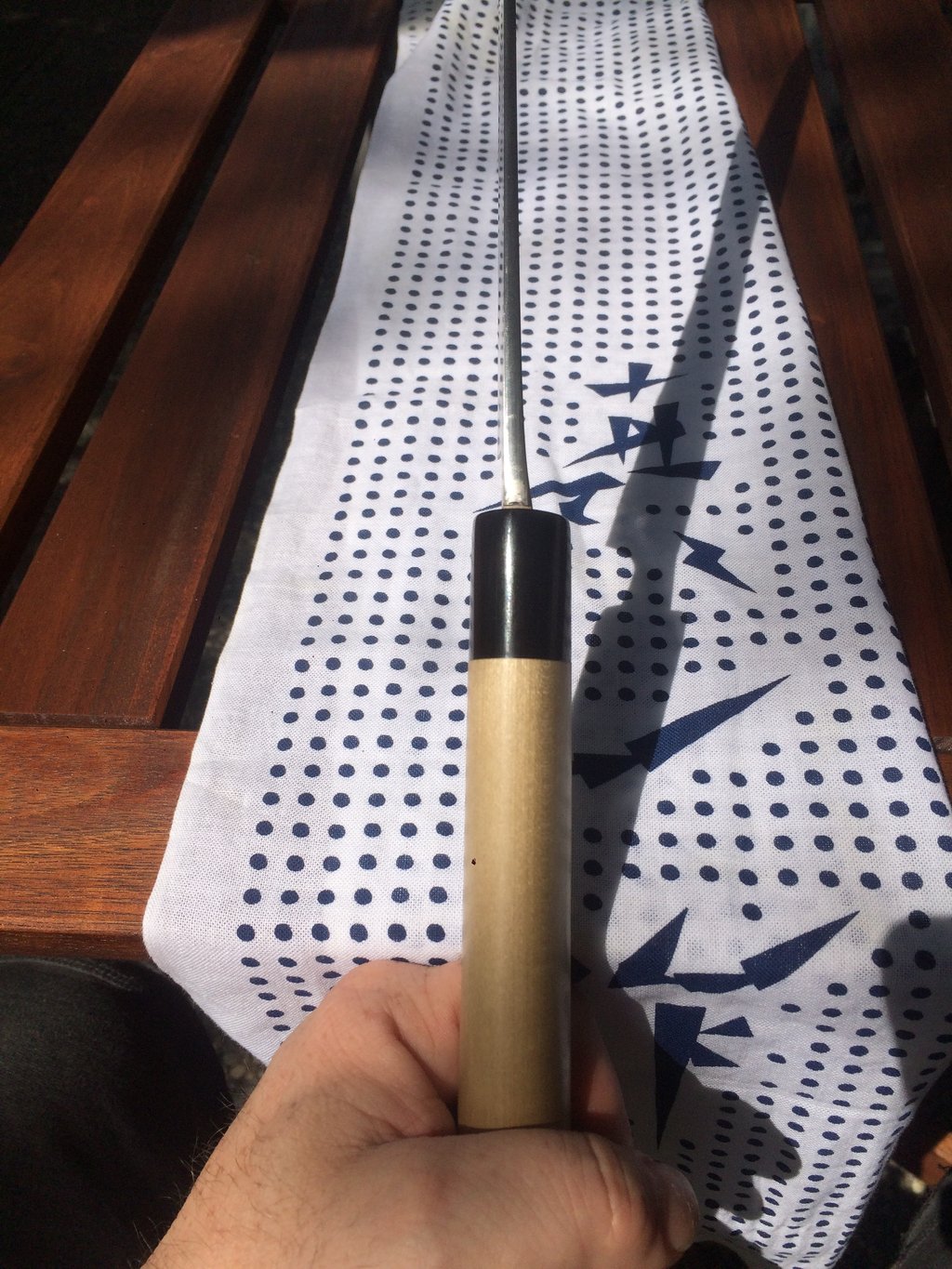 Das Lignum 3 sollte ein aus dreien ausgesuchtes Exemplar eines bekannten Berliner Händlers sein. Als es kam, fehlte mir die Erfahrung (wie geschrieben) und erst als ich es benutzte wurde mir klar, dass das gute Stück zu dick ist. Nicht das es damit in, zu mir, unpassender Gesellschaft wäre, aber gegenüber den Tadafusa Santoku sah es kein Land (Schärfe, Gleitgefühl beim Schneiden, ...). Ich habe dann, wie im anderen Thread beschrieben, viel Engagement und Muse hineingesteckt und es notdürftig ausgedünnt. Jetzt ist es besser, perfekt ist es aber nicht...