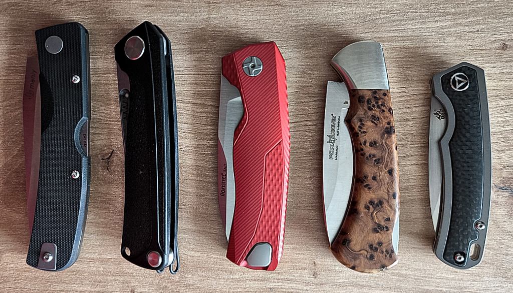In die Auswahl kamen letztendlich 5 Messer (im Bild von links nach rechts).