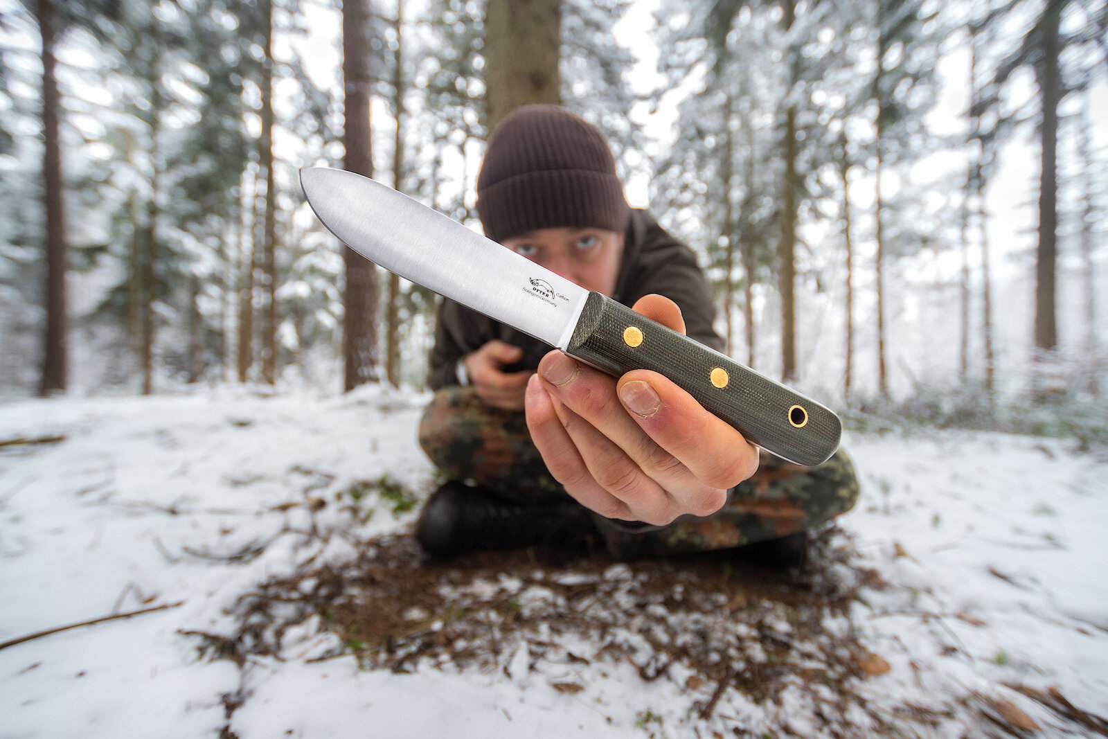 Das Otter mit grünem Micarta in der kurzen Ausführung durfte heute norddeutsch-eisige Waldluft schnuppern.