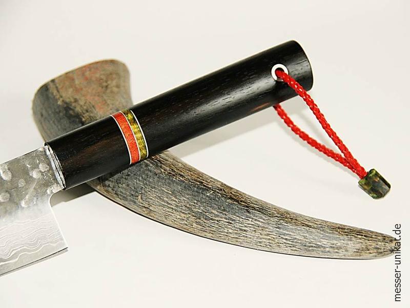 -Der Griff ist in Handarbeit aus Madakaskar Ebenholz mit folgenden Ziereinlagen verbaut worden: