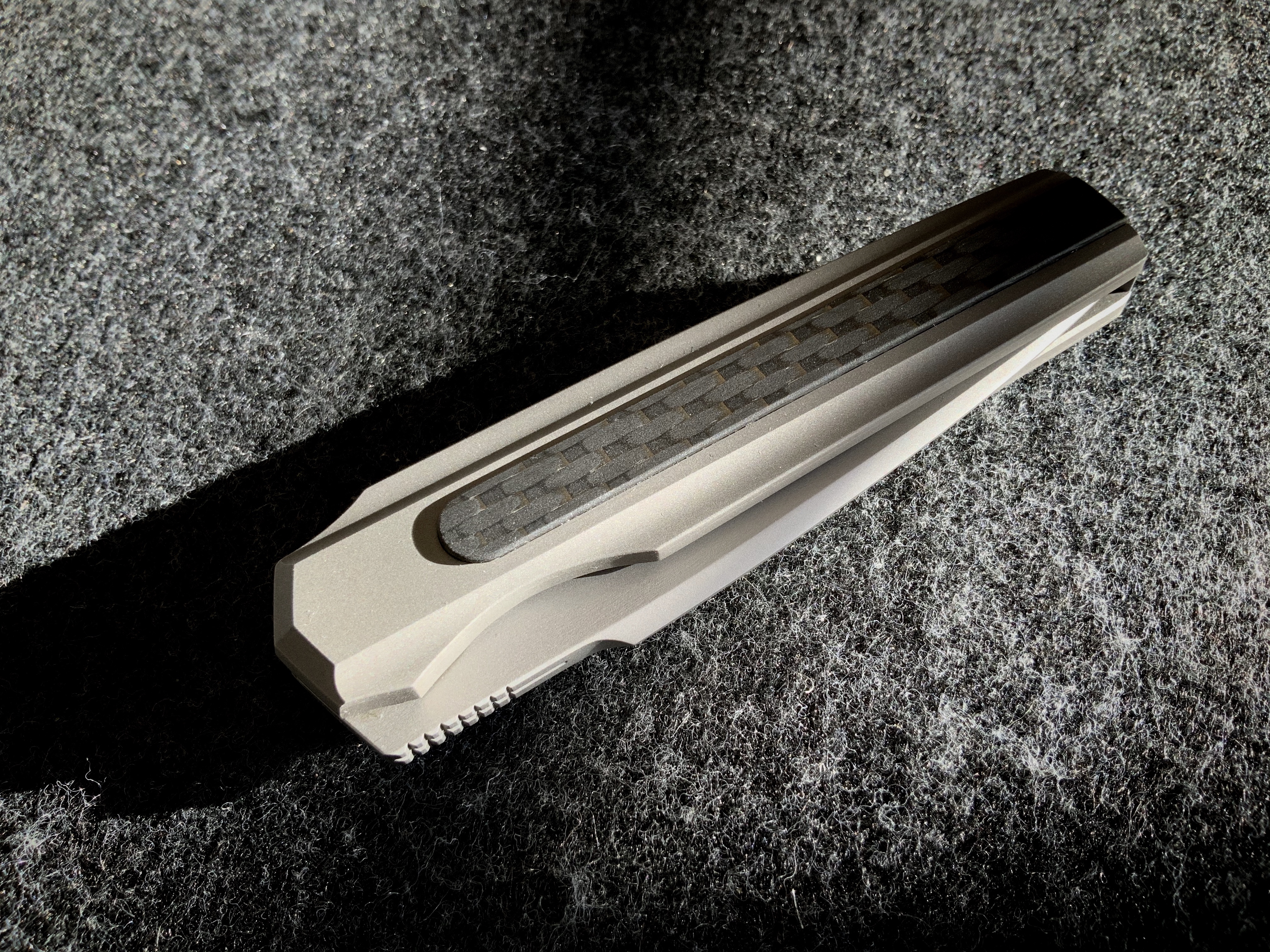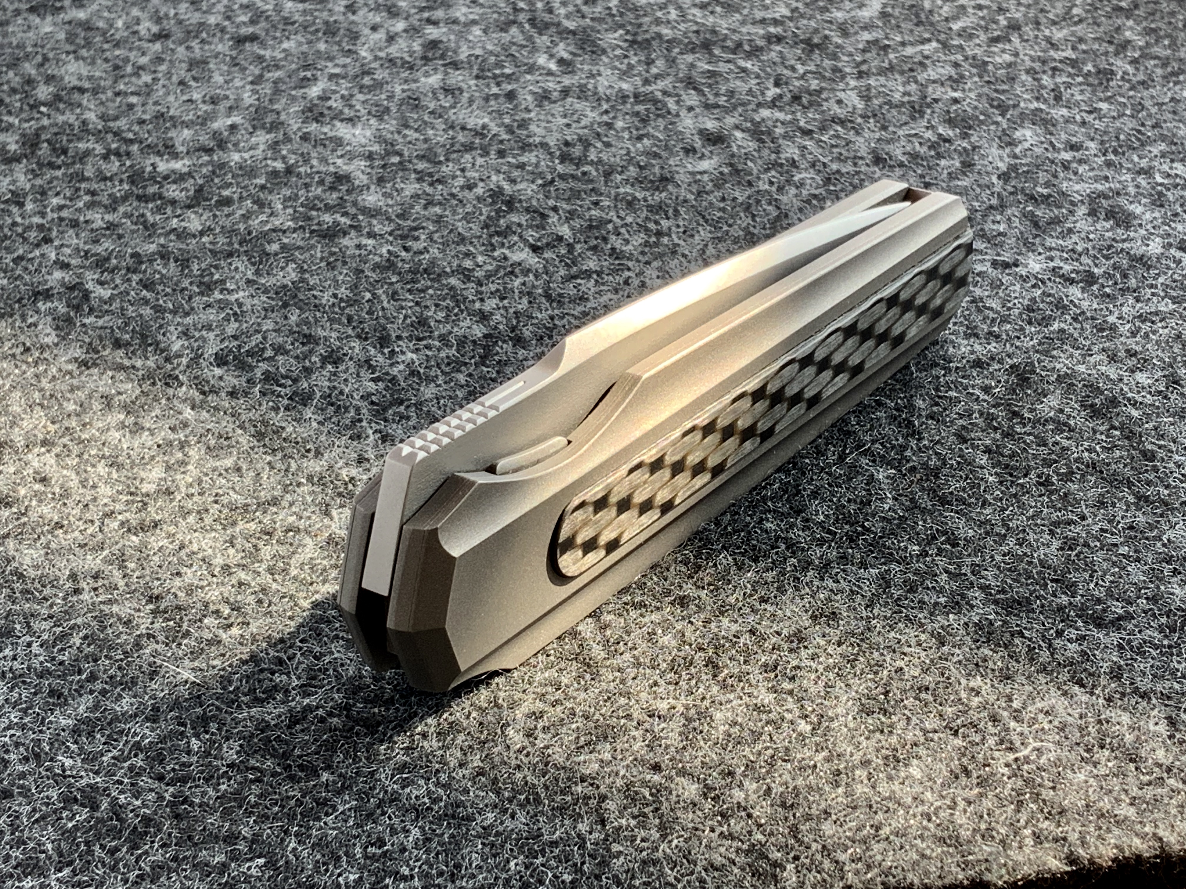 Bei den nachfolgenden Modellen der Chimäre fräst Raphael die Titanliner zusätzlich aus, wodurch es weniger Gewicht hat und das Messer mehr zur Klinge balanciert.