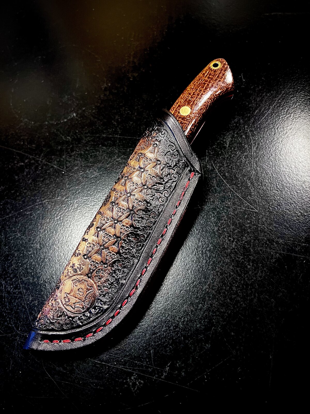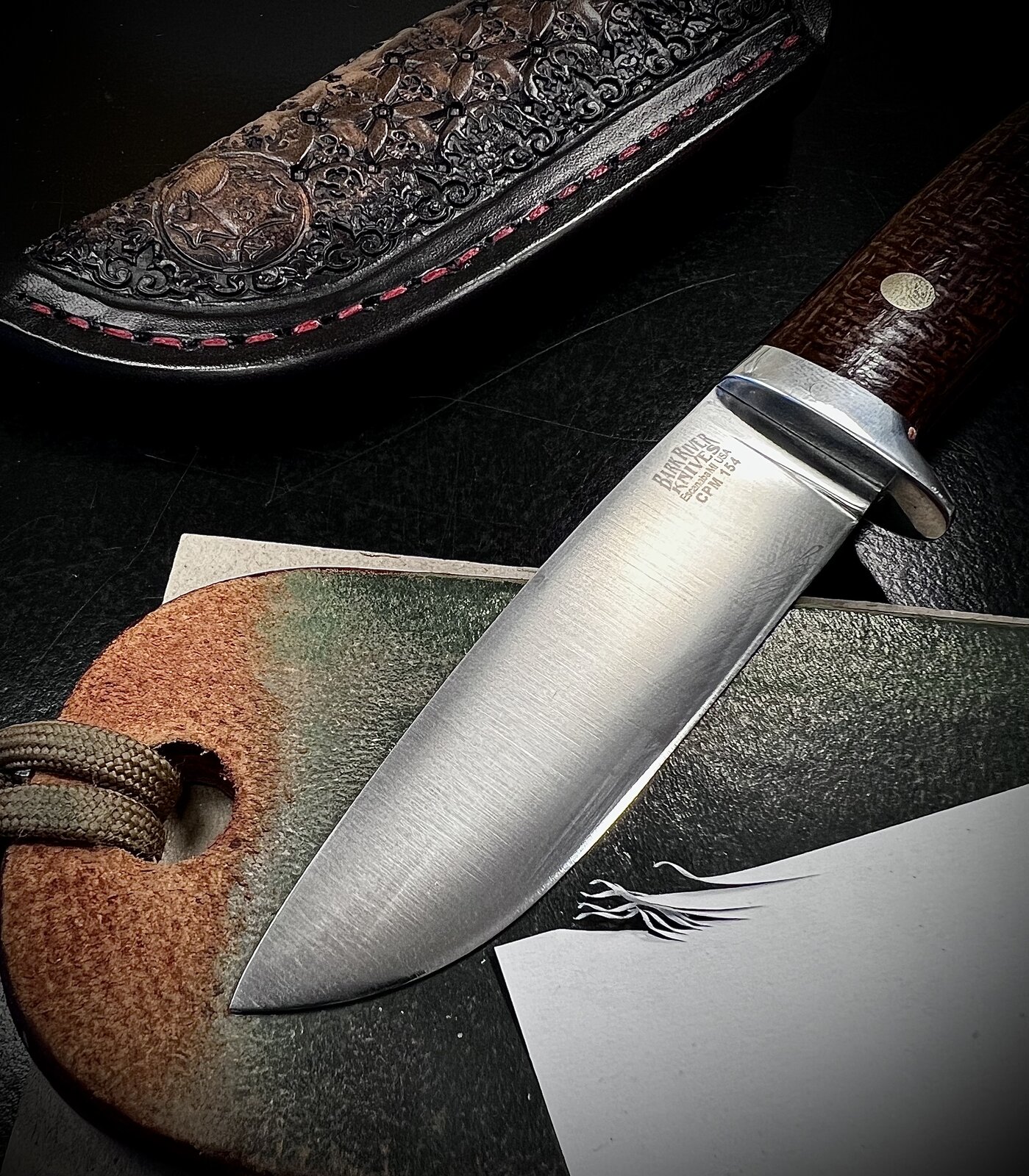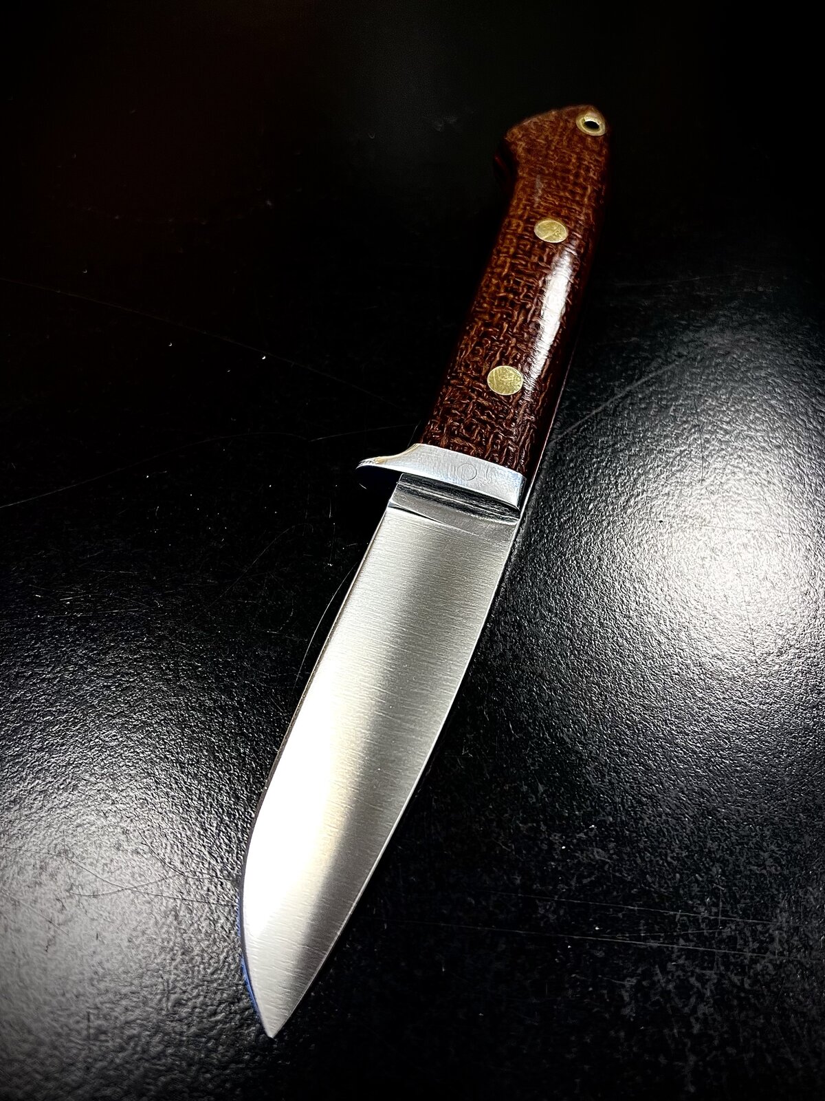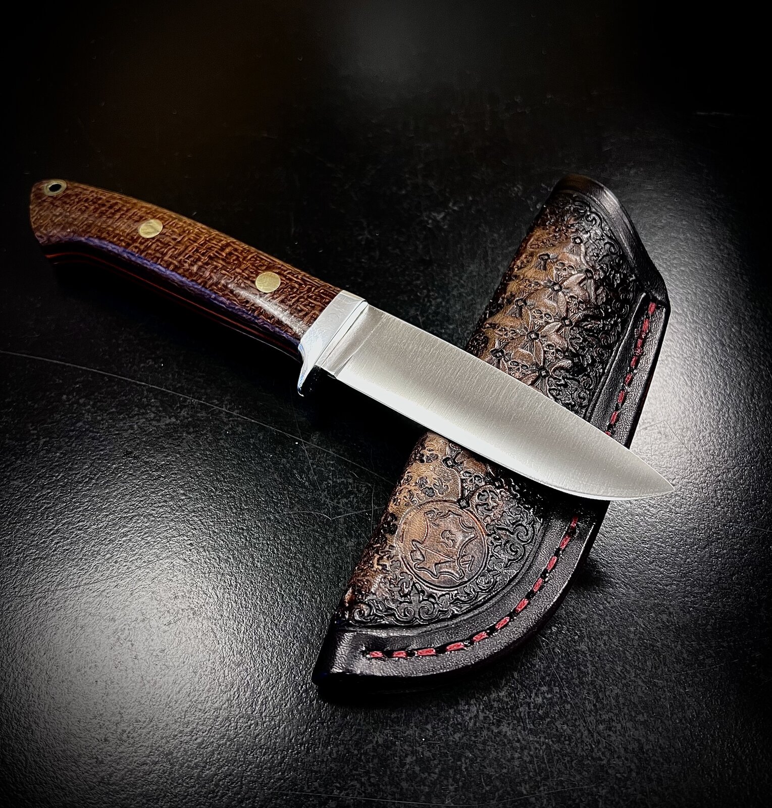 Klasse Messer!"Scout" von Andrew Jordan. Klinge, Guard und Butt aus 1.2842, Griff Micarta. Linkshandscheide von Stefan Kleinhuber.Anhang anzeigen 329048